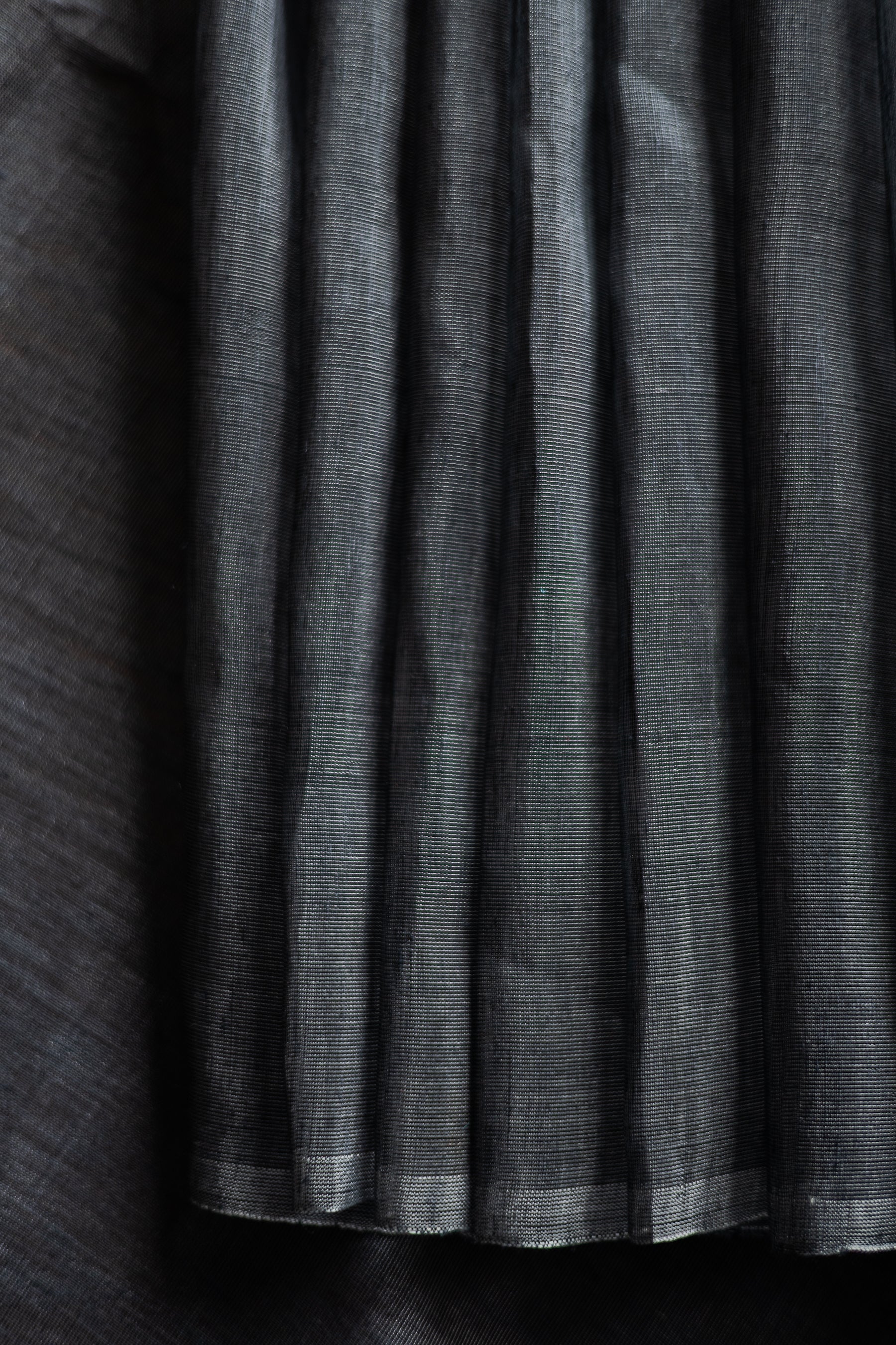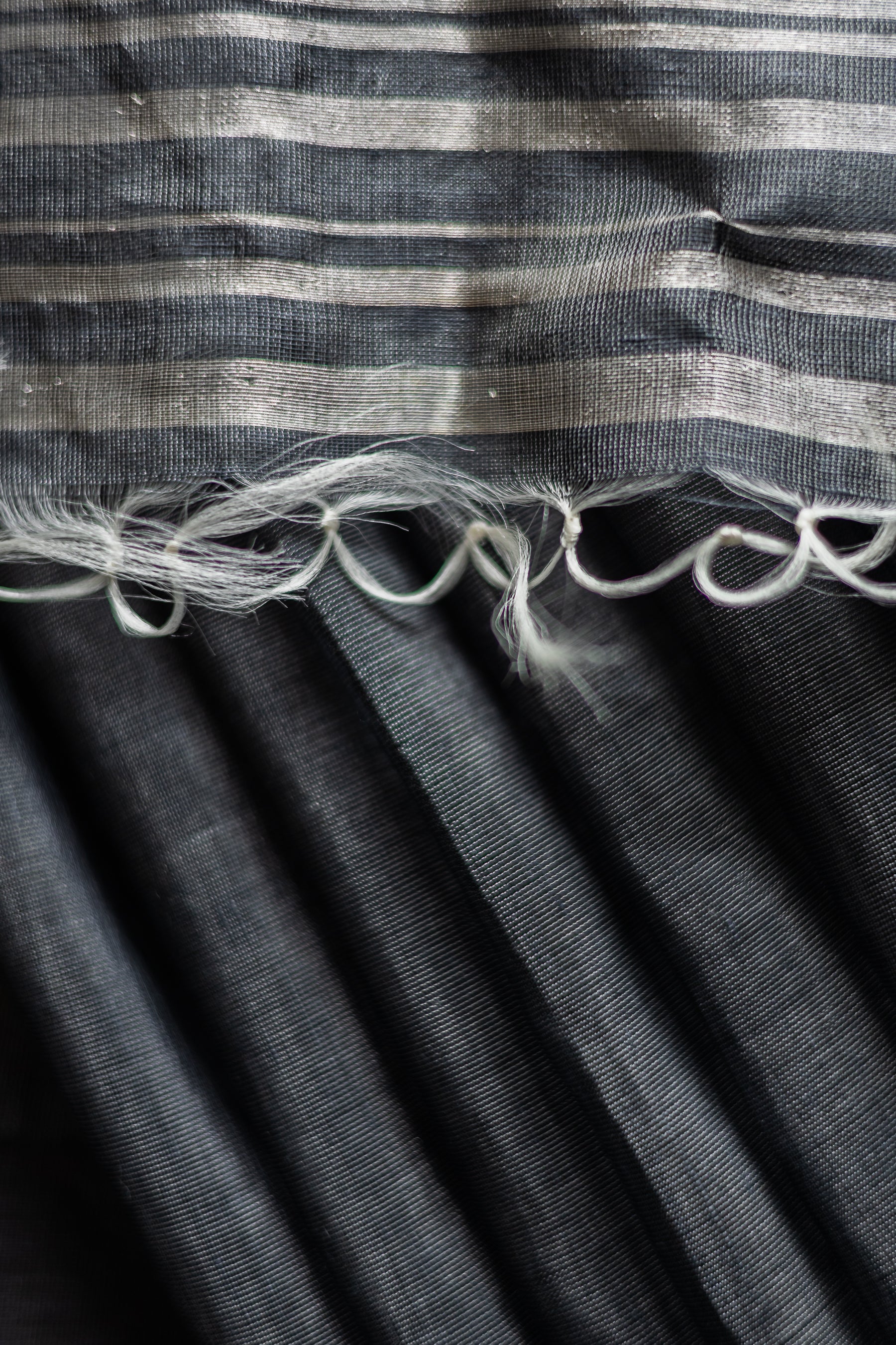Black Linen Silk Cotton with Silver Stripes Pallu Saree