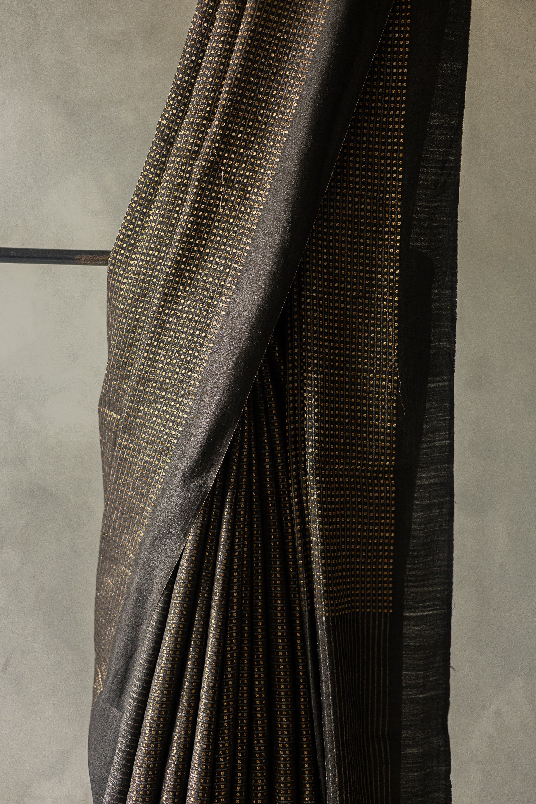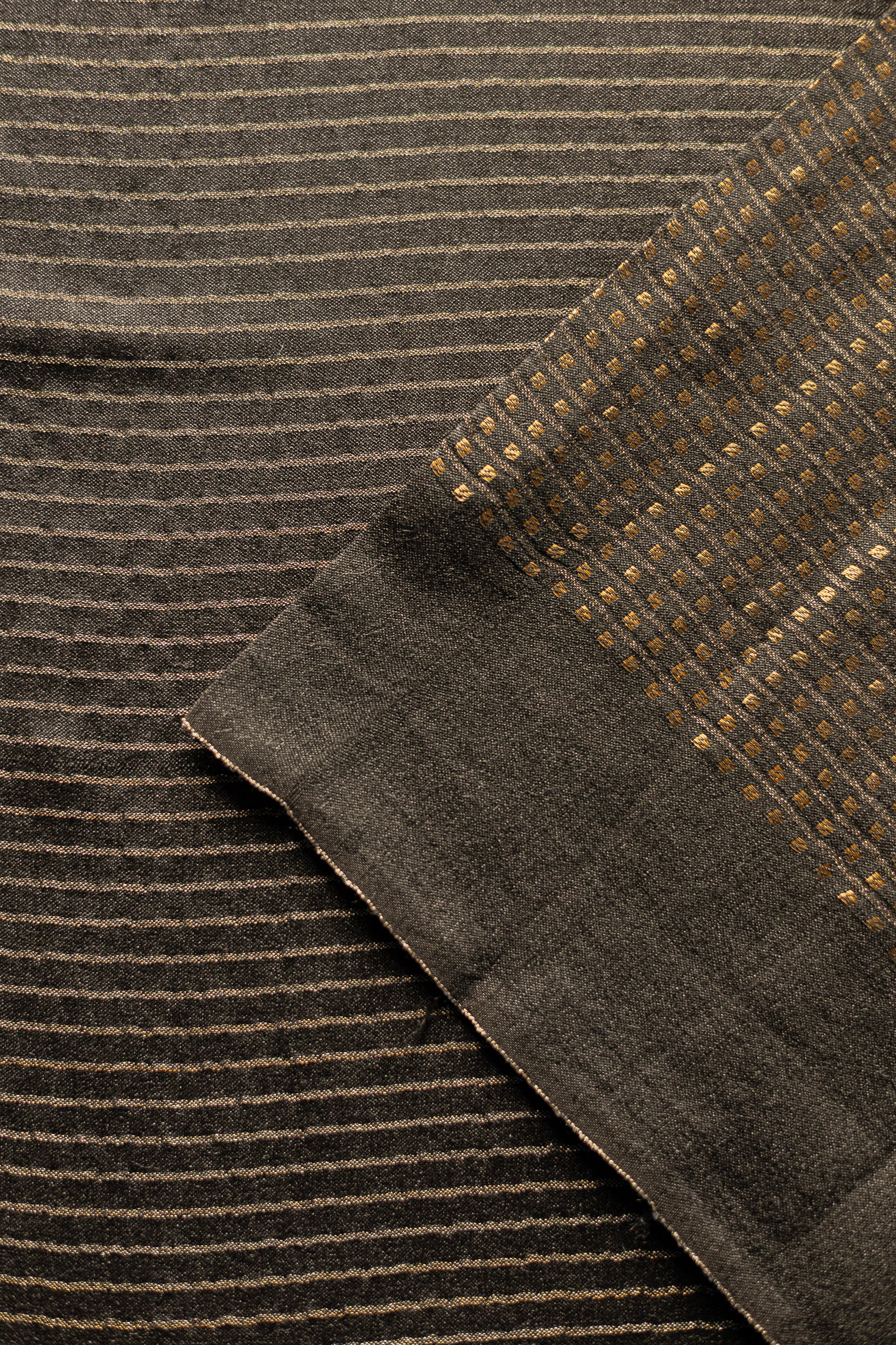 Black Silk Cotton Handspun All Over Small Gold Checks Saree
