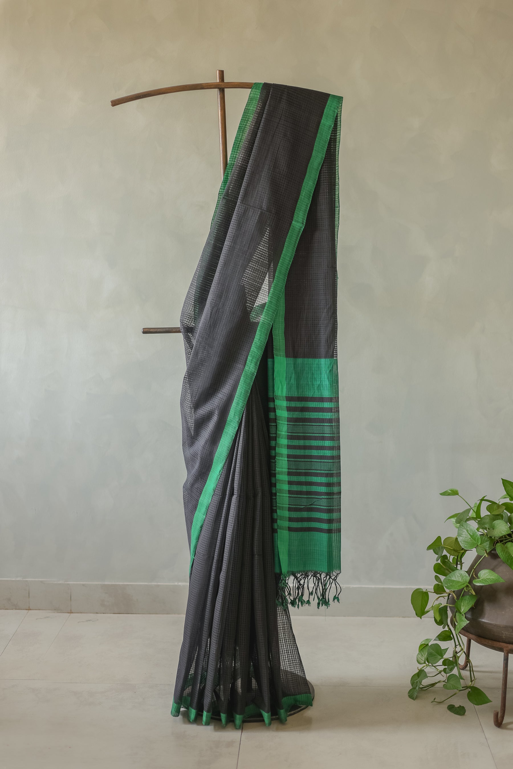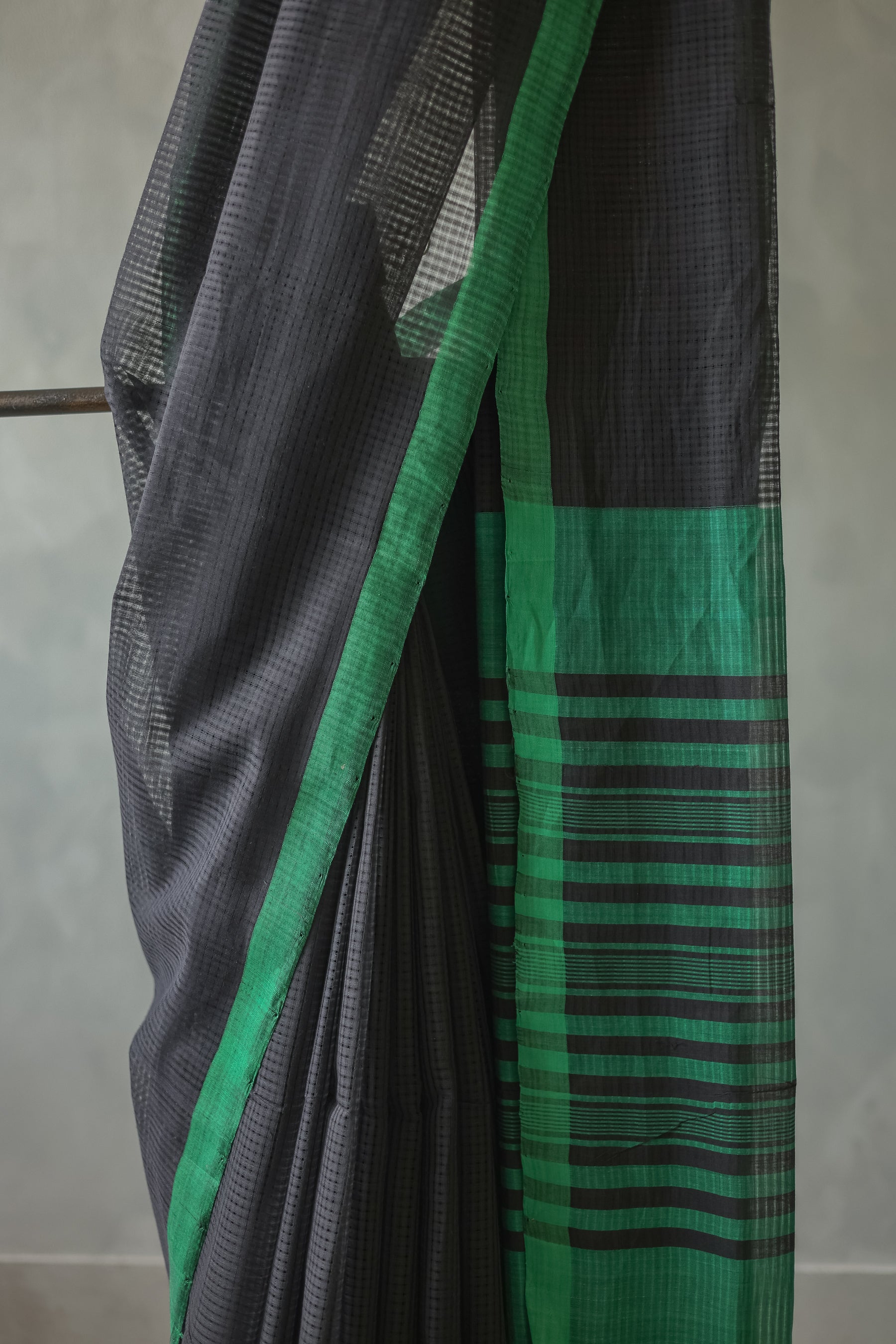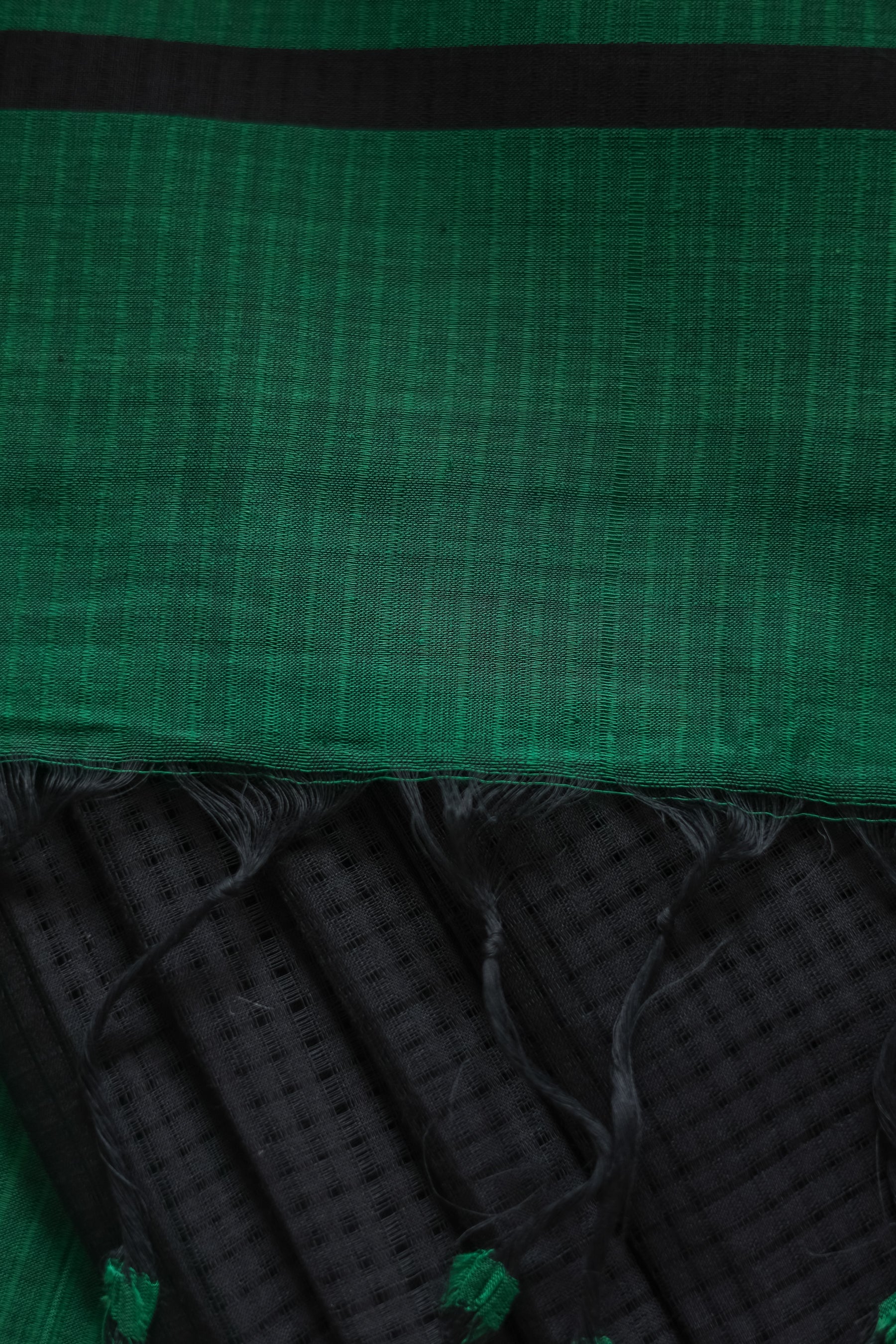 Black with Green Border Striped Pallu Mangalagiri Cotton Saree