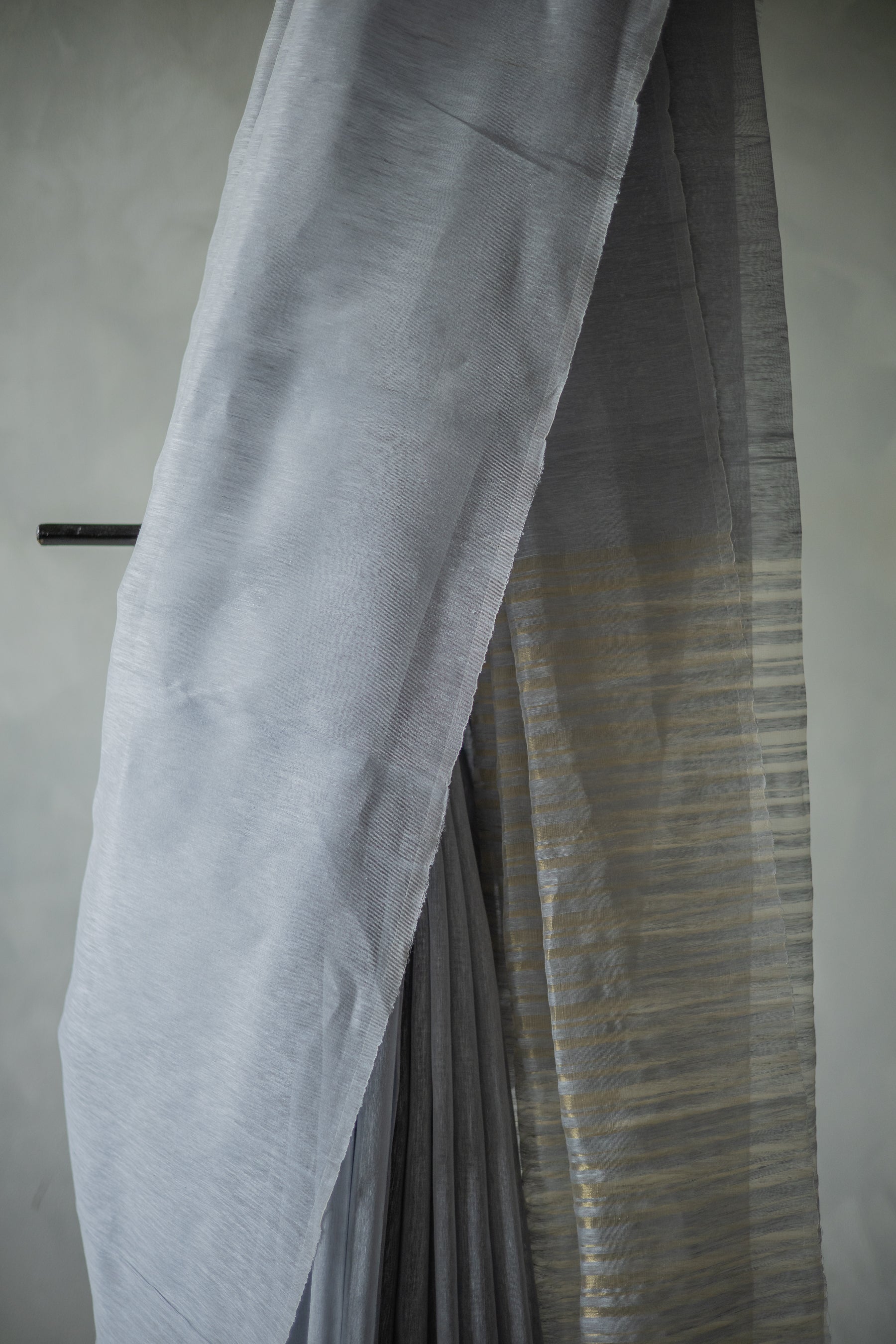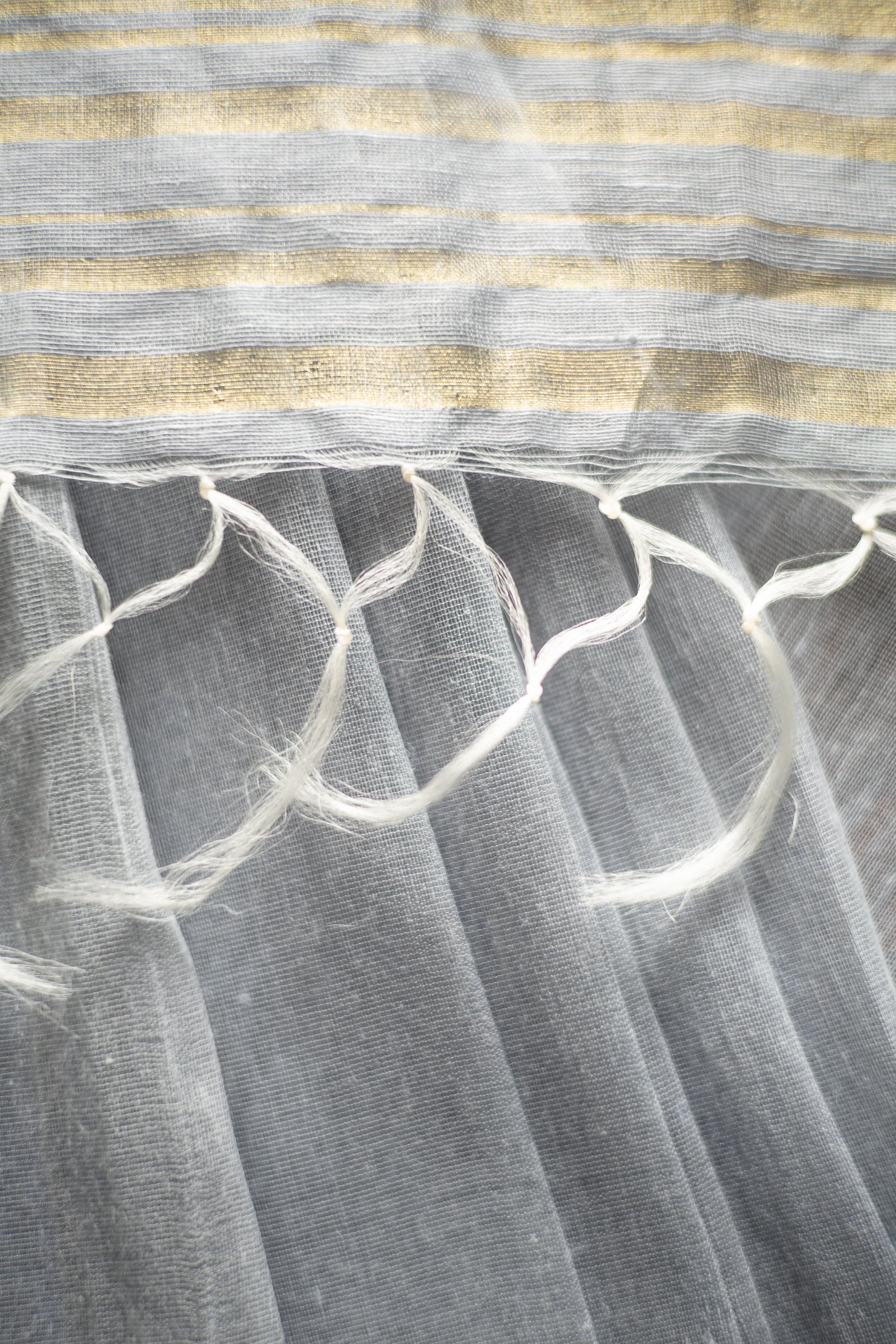 Blue Linen Silk Cotton with Gold Stripes Pallu Saree
