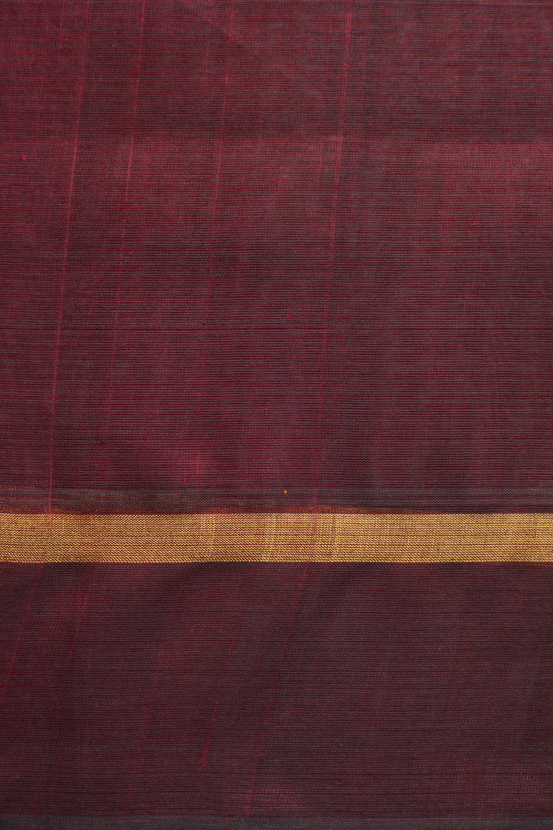 These saree with all-over fine woven stripes, crafted in a soft, breathable silk-cotton blend that drapes with an elegant natural fall. The saree is highlighted with a rich maroon traditional border, adding depth and contrast to the minimalist striped body. The pallu continues the striped pattern for a refined, uniform finish. Lightweight, smooth, and comfortable for extended wear.