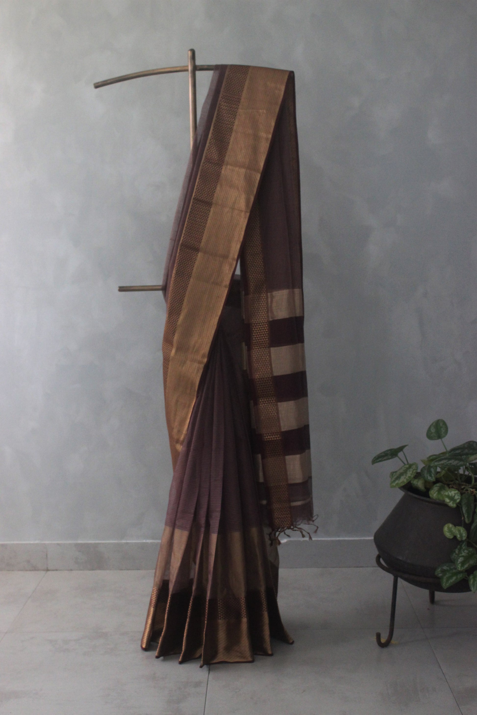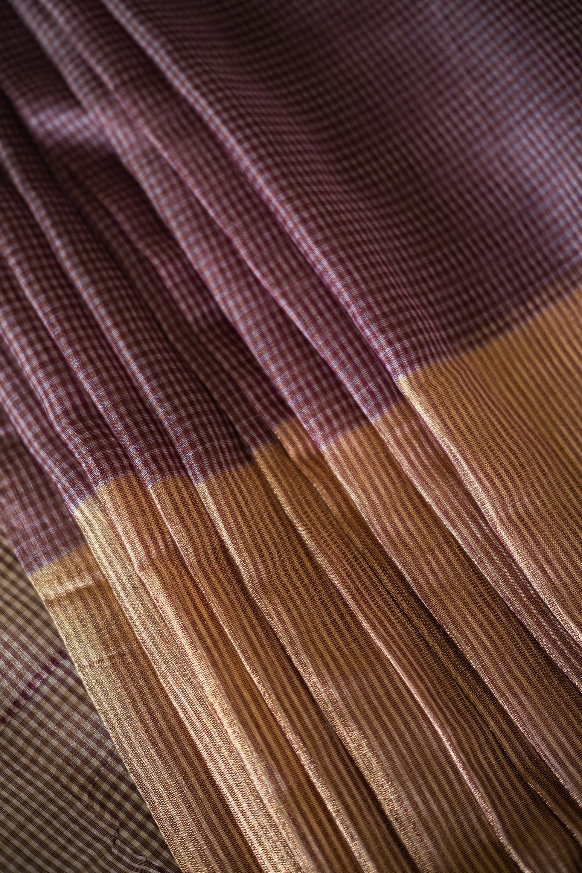 Dark Purple Checked Body with Rassa Border Silk Cotton Saree