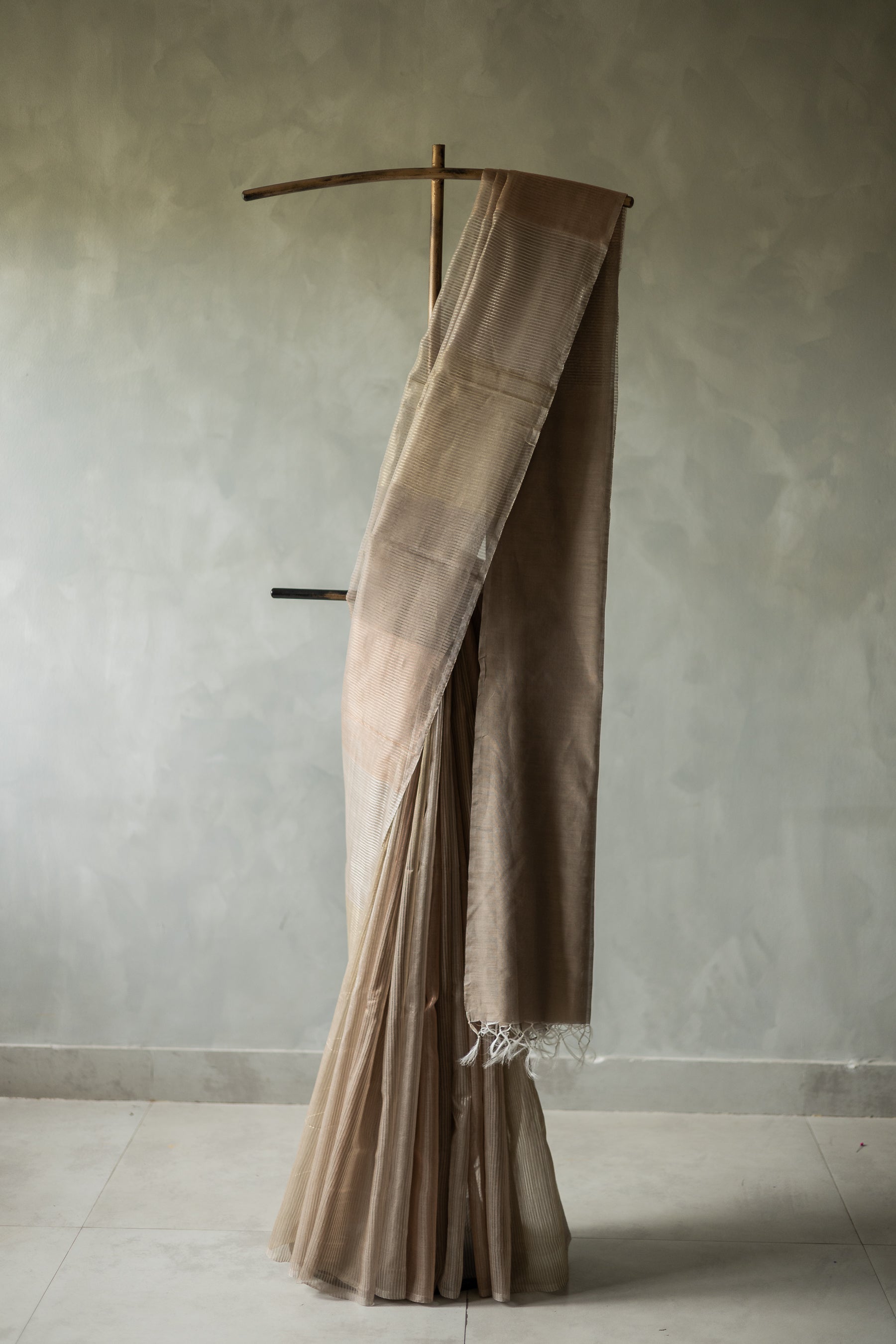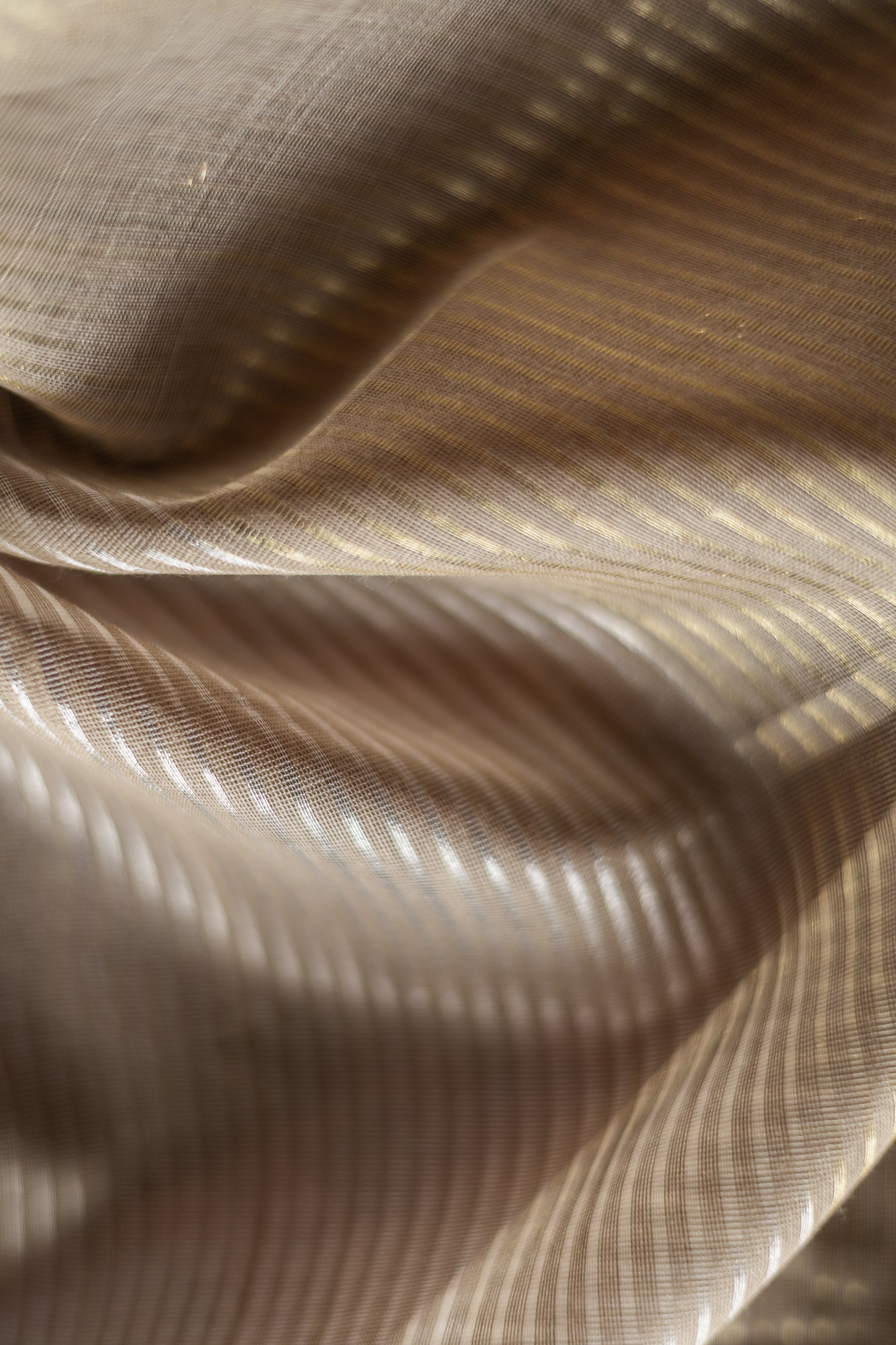 This Gold Silk Cotton Saree is woven with all-over stripes, creating a refined and elegant pattern that enhances its traditional appeal. The blend of silk and cotton offers a soft sheen with a lightweight, breathable texture, making it perfect for everyday elegance and festive occasions alike.