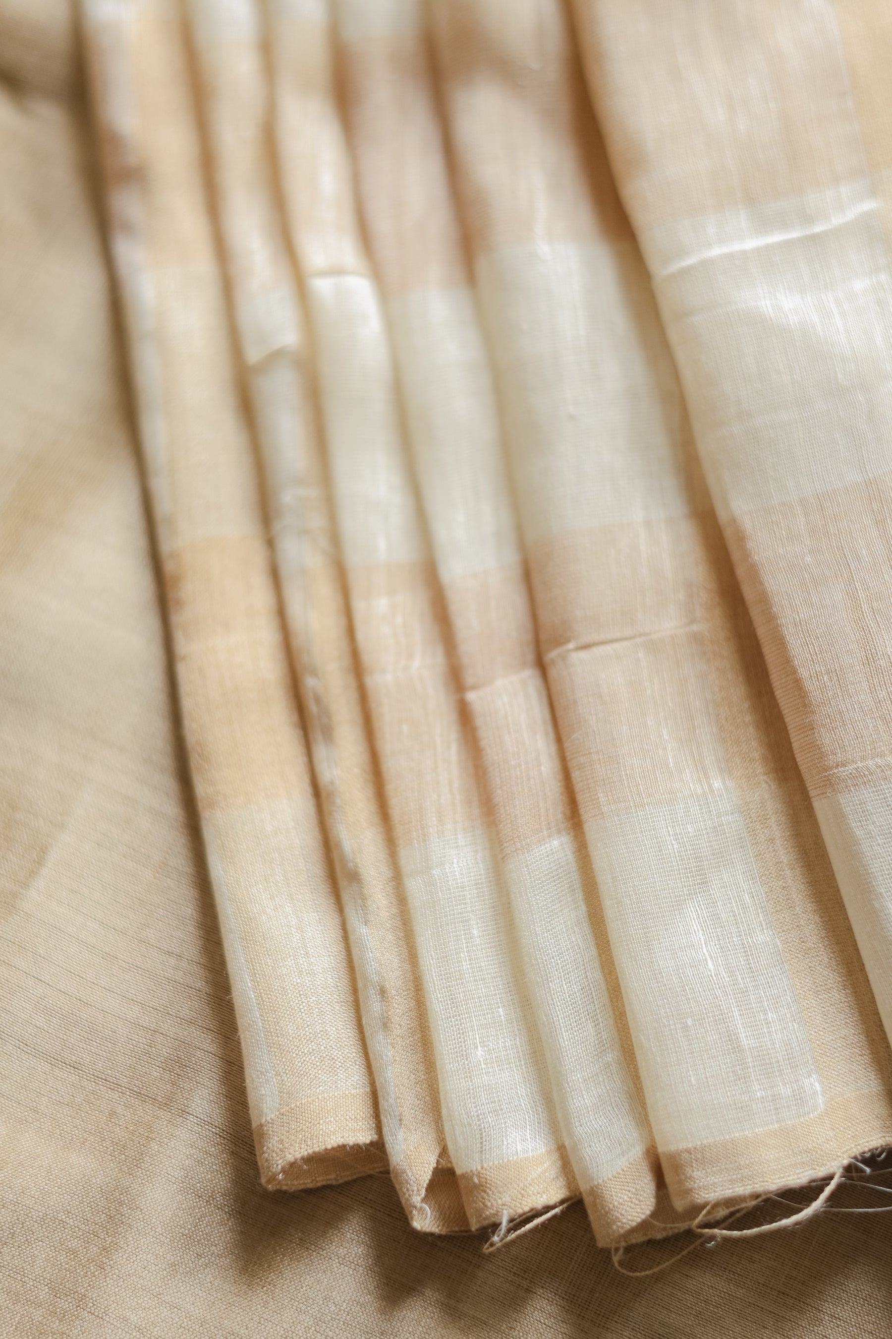 Gold and White Checked Maheshwari Silk Cotton Saree