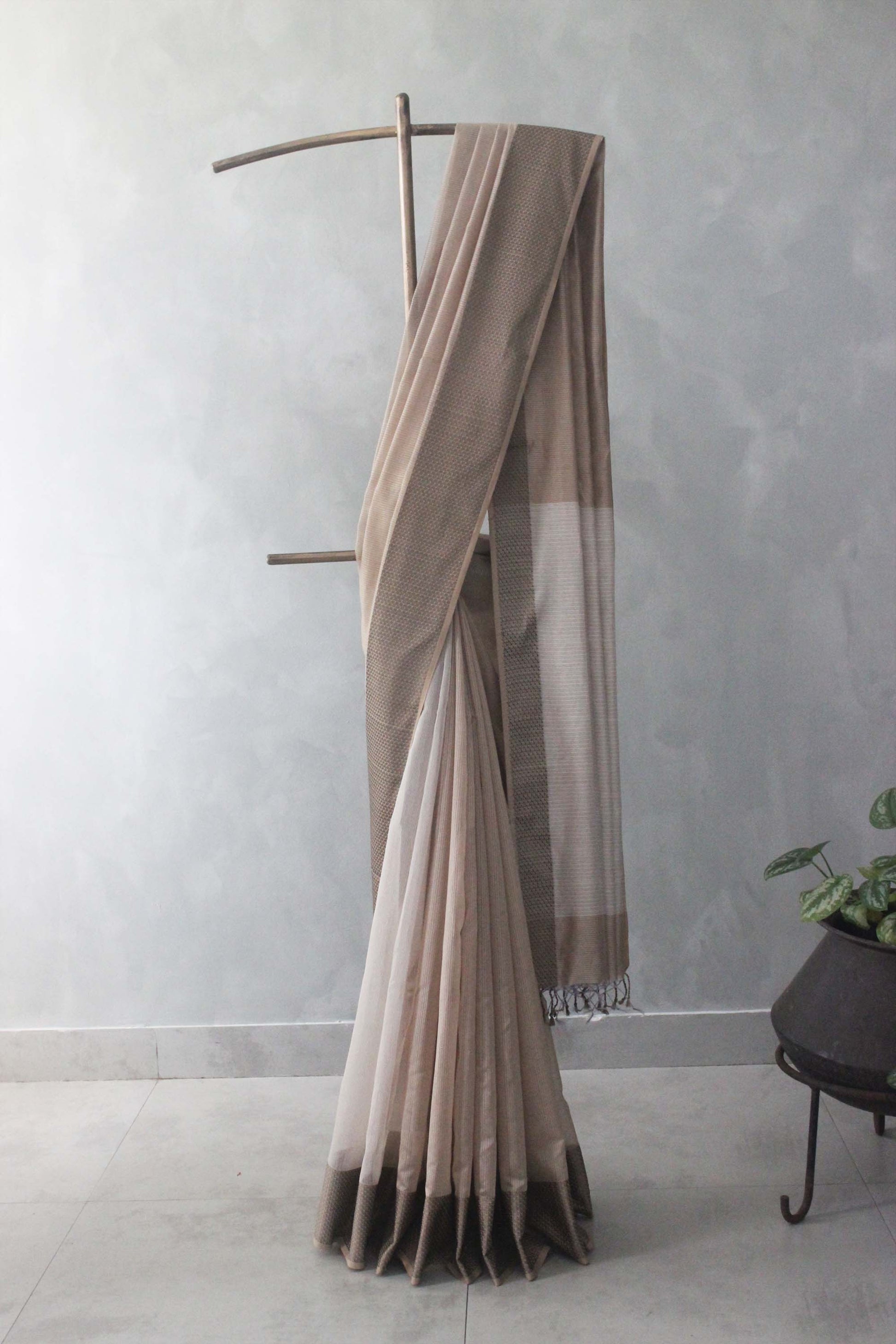 Crafted from the finest silk cotton fabric, it seamlessly marries luxury and comfort, offering you a truly regal experience. The subtle color adorning the body of the saree infuse it with a classic charm, creating an aura of understated elegance. The highlight, however, lies in the intricate rassa border that frames the saree with utmost finesse.