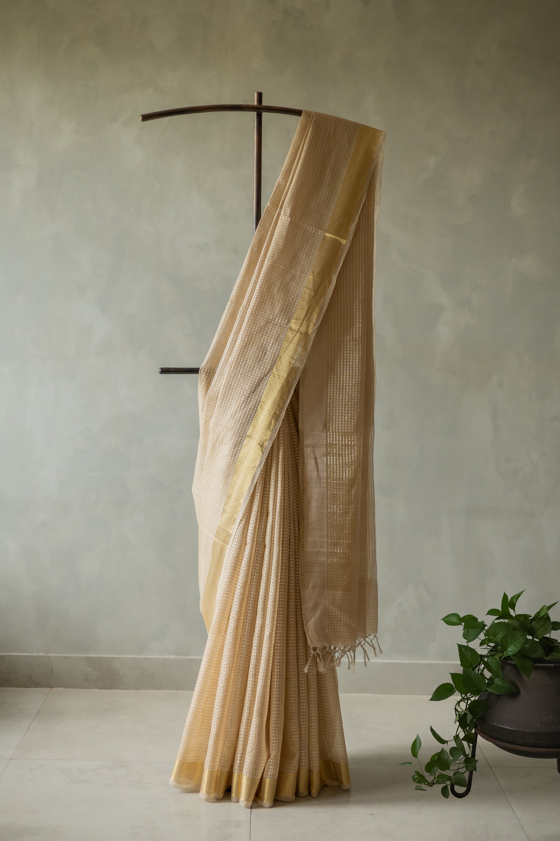 Gold Kota Silk Cotton All Over Small Checks Saree