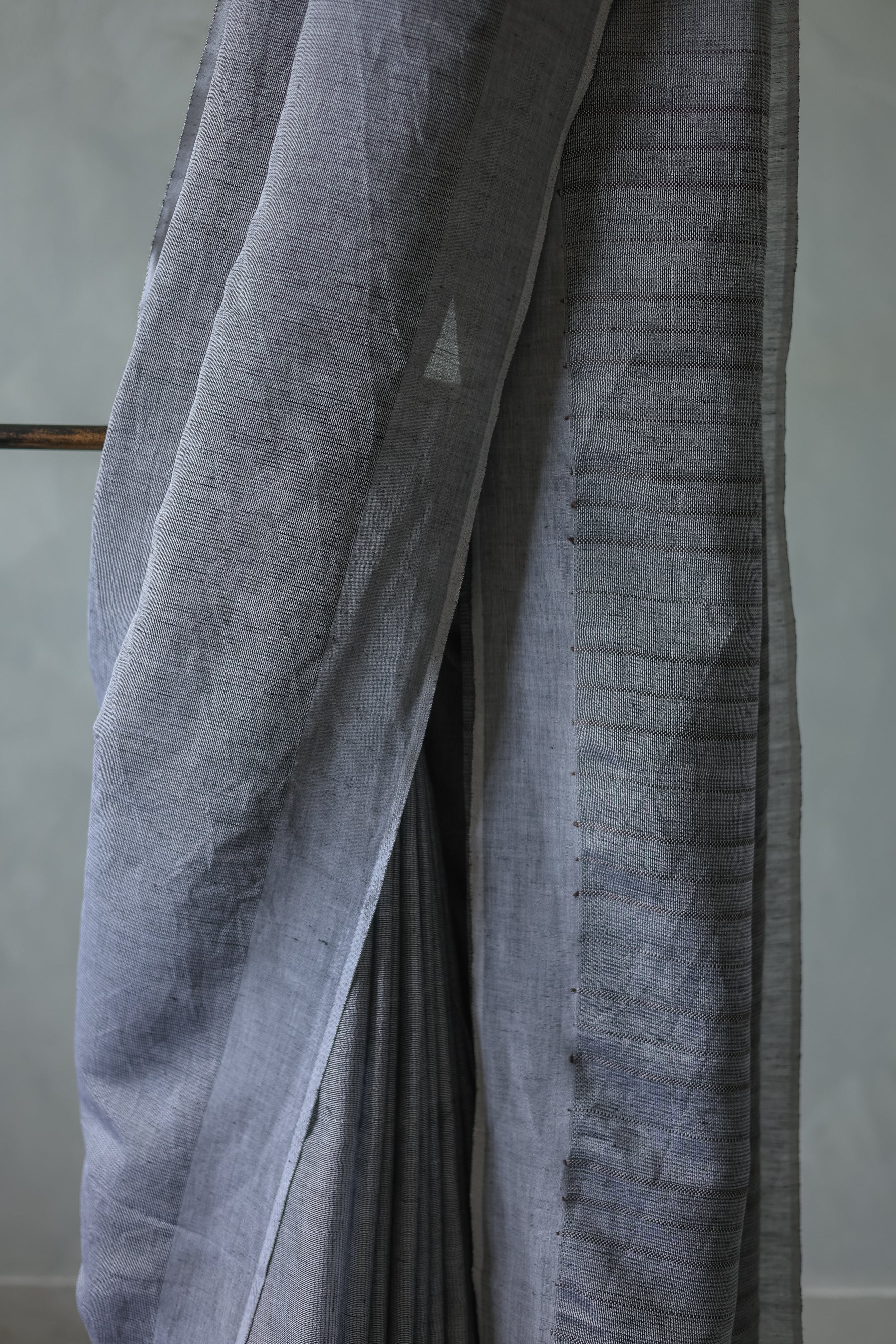 Grey Cotton Linen Leno Woven with Plain Border Saree
