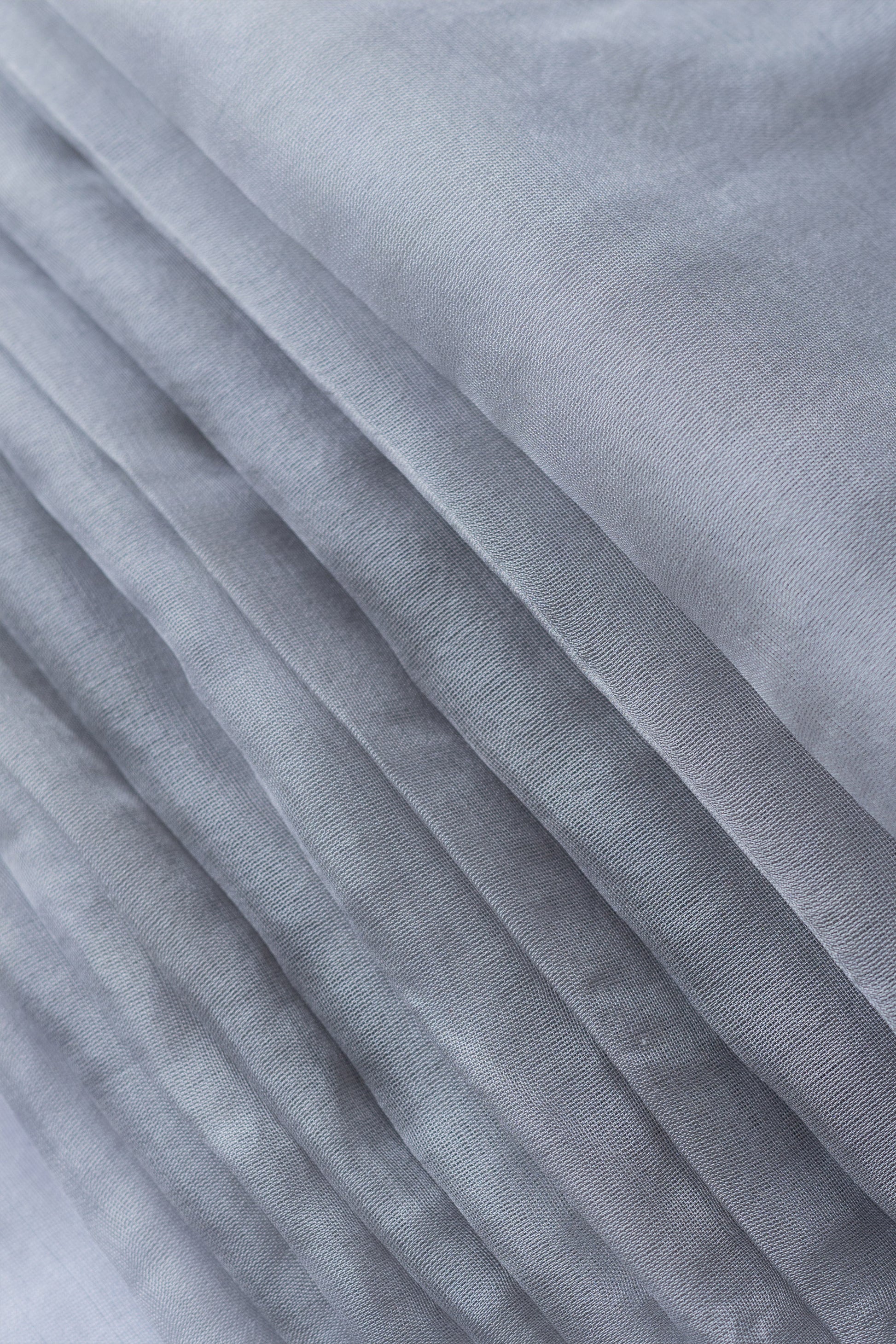 The Grey Silk Tissue Saree with Mercerized Cotton and Khapa Abstract Pallu is a graceful blend of texture and artistic design. The grey silk tissue adds a touch of sophistication, while the mercerized cotton enhances the fabric's comfort. The Khapa abstract pallu introduces a contemporary and artistic element to the traditional ensemble. Ideal for various occasions, this saree offers a perfect fusion of classic charm and modern aesthetics, making it a versatile and stylish choice.