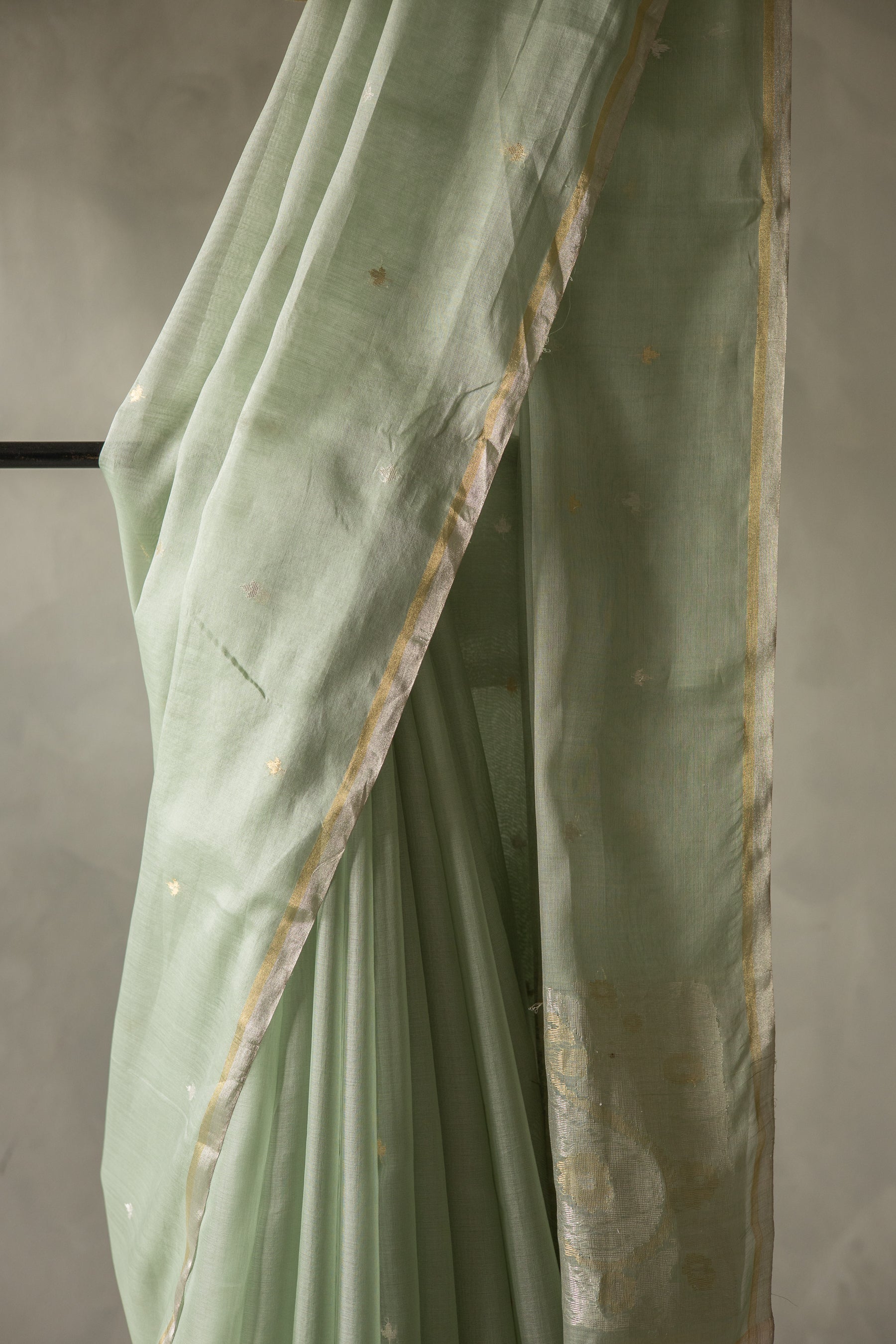 Greyish Green Silk Cotton Autum Leaf Motif Saree