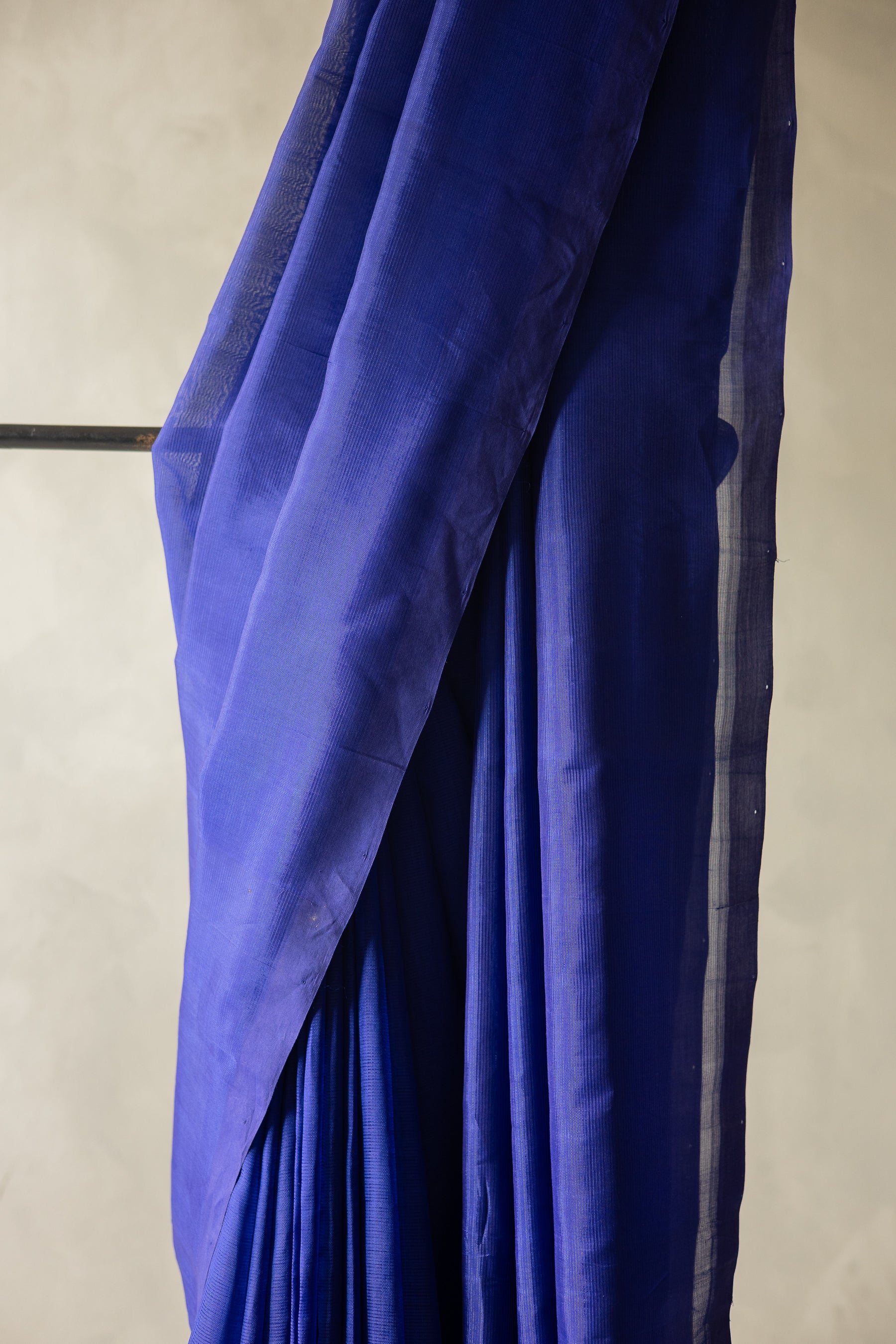 Indigo Blue Plain Mangalagiri Silk Cotton Saree