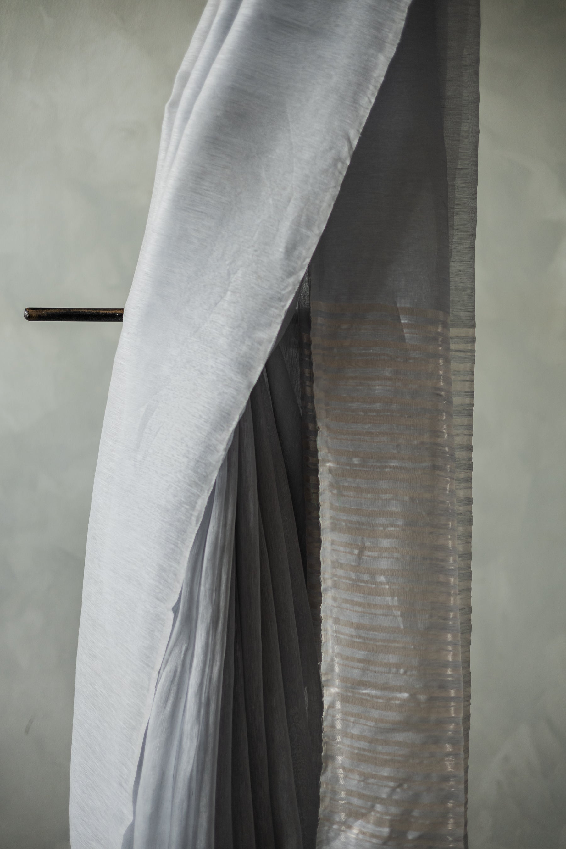 Light Blue Linen Silk Cotton with Silver Stripes Pallu Saree