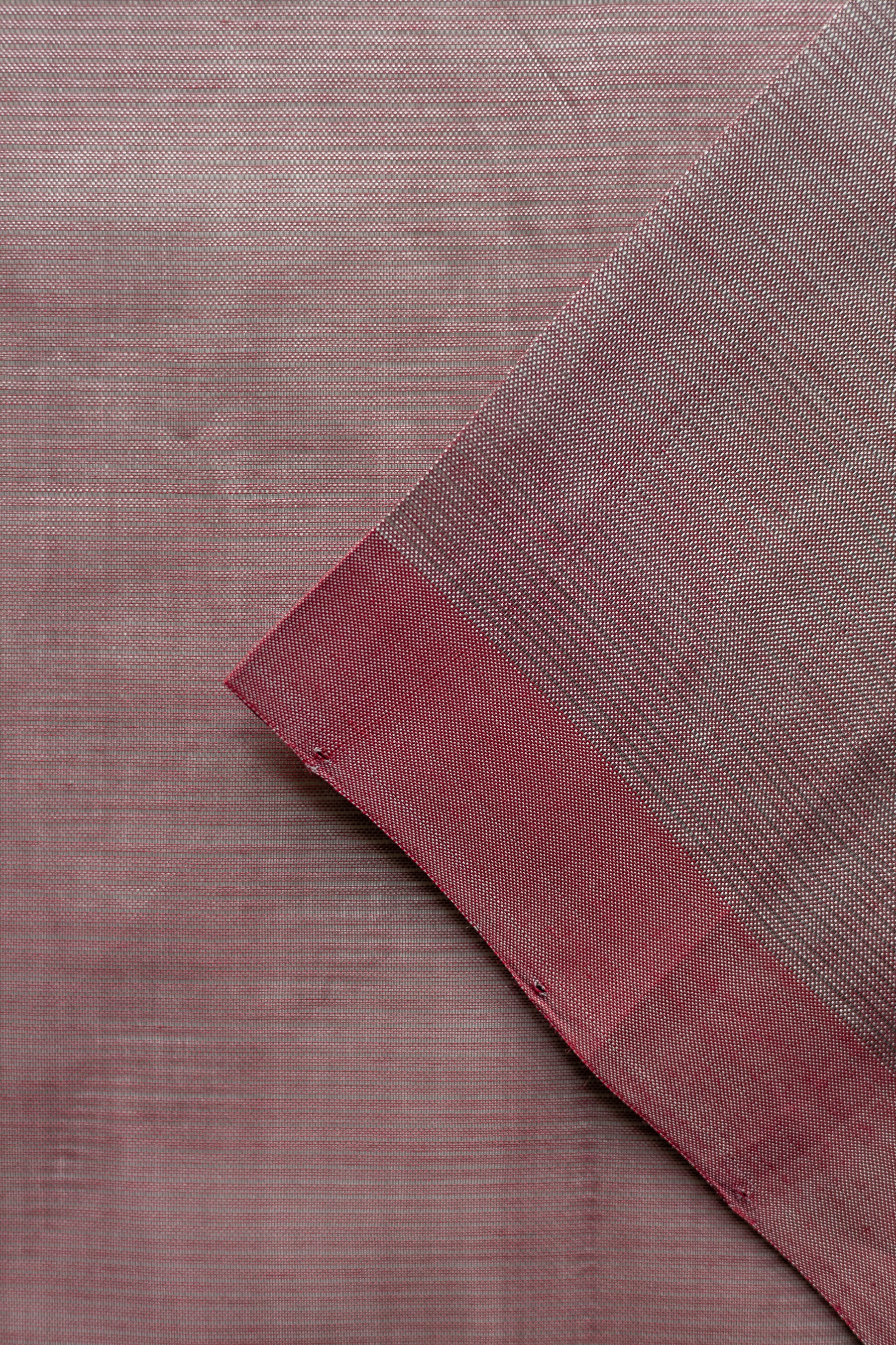 A Light Burgundy Mangalagiri silk-cotton saree featuring a plain, minimalist body for a clean and elegant look. The fabric blends the softness of cotton with the subtle sheen of silk, offering a lightweight and comfortable drape. Its smooth texture and natural luster give the saree a refined, understated charm. Ideal for both casual and formal occasions, it embodies simplicity with timeless appeal.