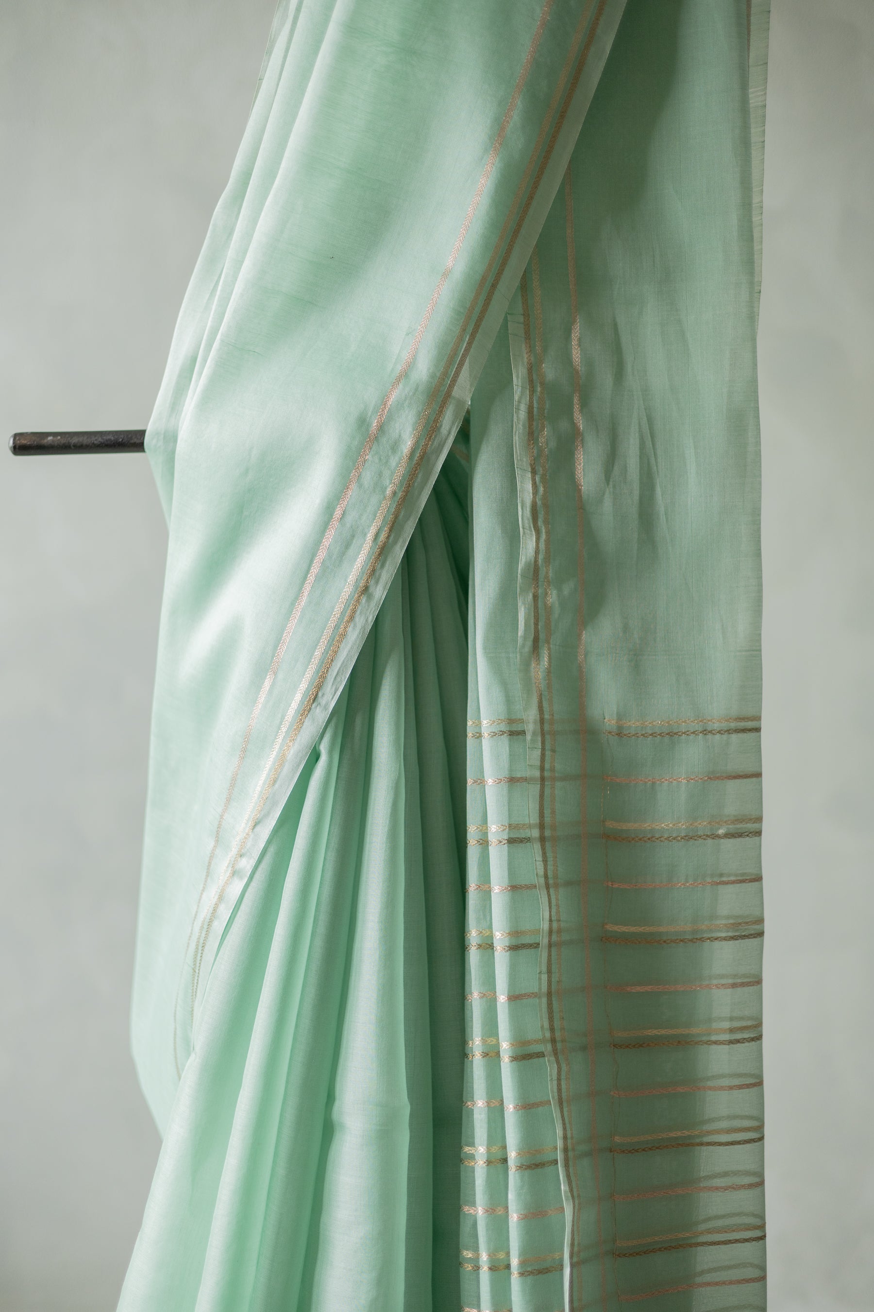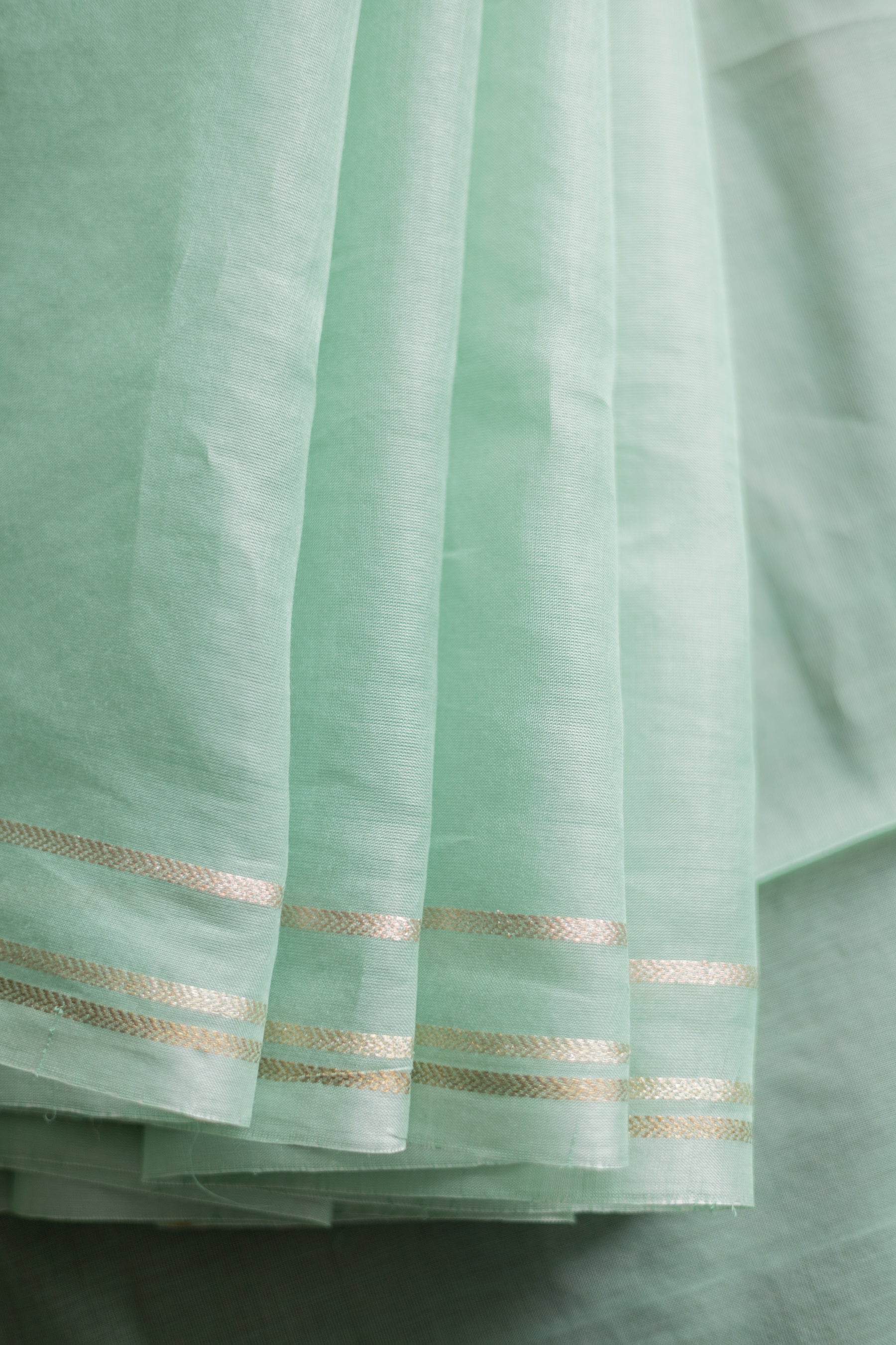 Light Green Silk Cotton with Gold and Silver Border Saree