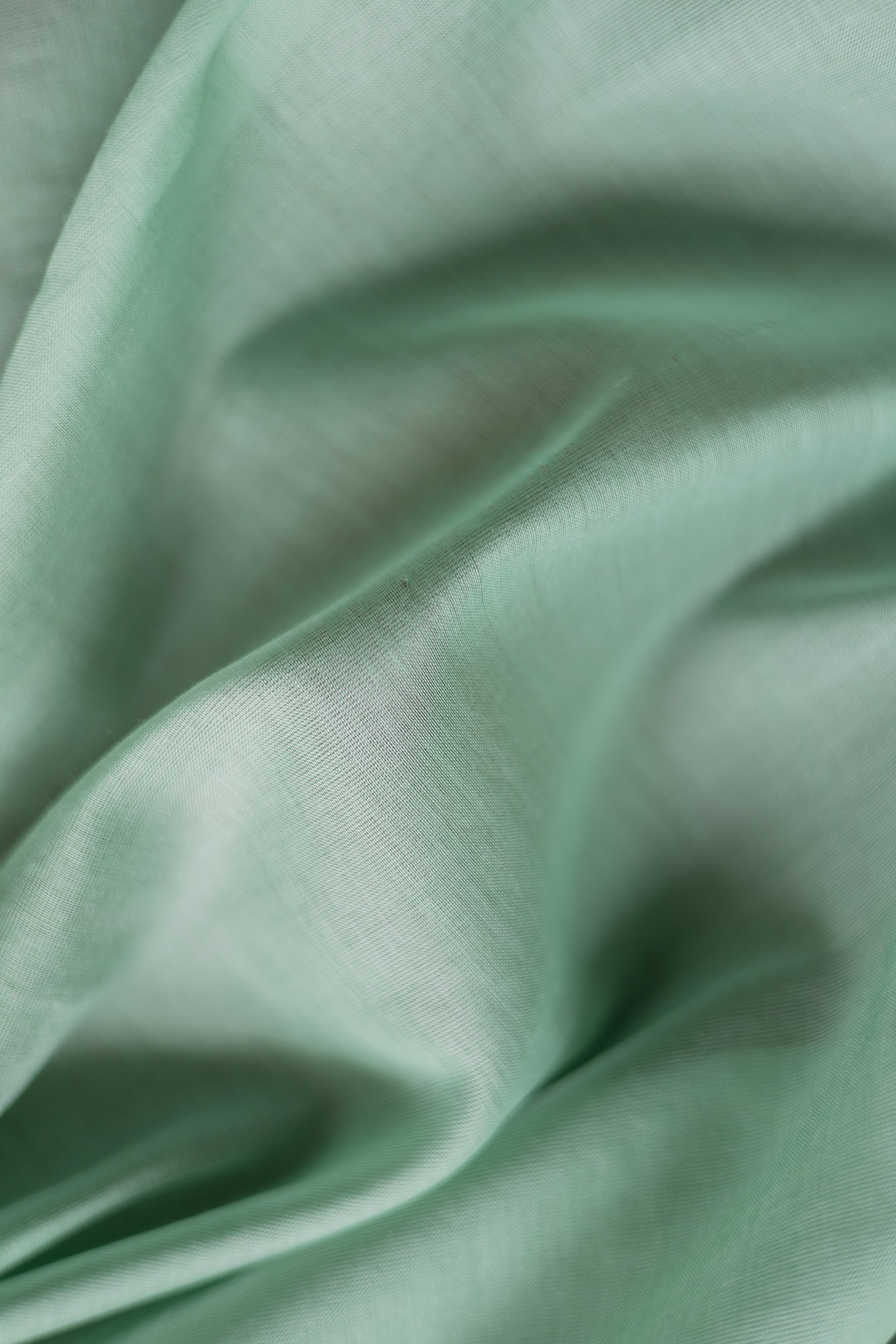 A Light Green Silk Cotton saree woven from a finely balanced blend of silk and cotton fibers, offering a soft sheen alongside breathable comfort. The saree is detailed with a dual-tone zari border combining gold and silver threads, expertly woven to create a harmonious contrast against the muted green base. The fabric exhibits a smooth texture with a subtle luster, while the precisely executed zari work reflects traditional weaving techniques. Lightweight with a crisp yet fluid drape, this saree is suitable for formal occasions demanding both elegance and understated sophistication.