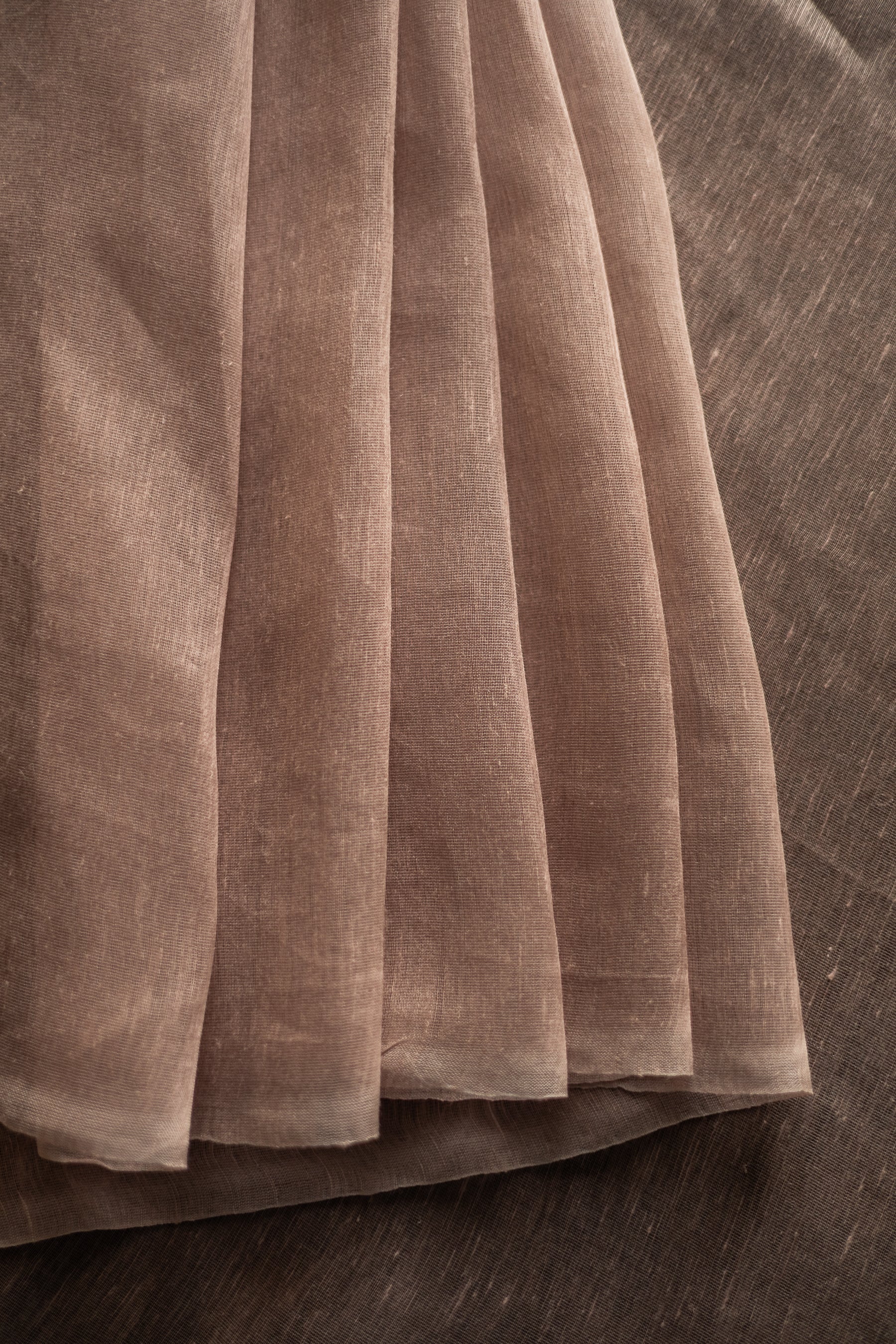 This Light Pink Linen Silk Cotton Saree features a smooth, textured body that blends the softness of silk, the breathability of cotton, and the crispness of linen. The pallu is adorned with elegant silver stripes, adding a subtle shimmer and contemporary charm to its classic appeal.