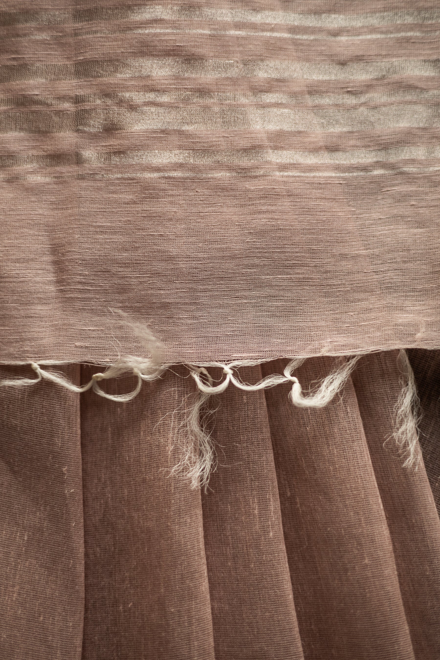 Light Pink Linen Silk Cotton with Silver Stripes Pallu Saree