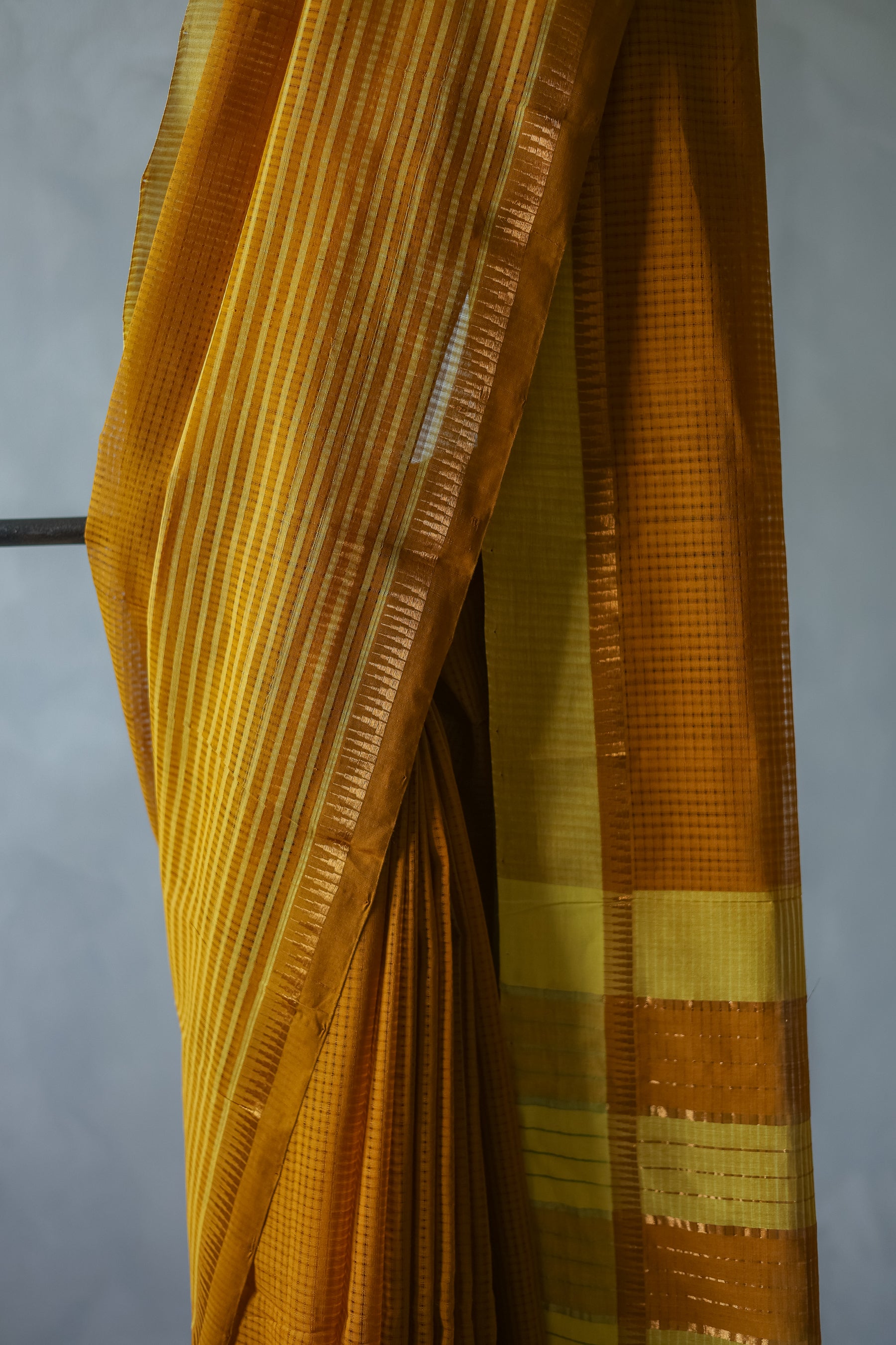 Mustard and Yellow Striped Pallu with Big Border Mangalagiri Cotton Saree