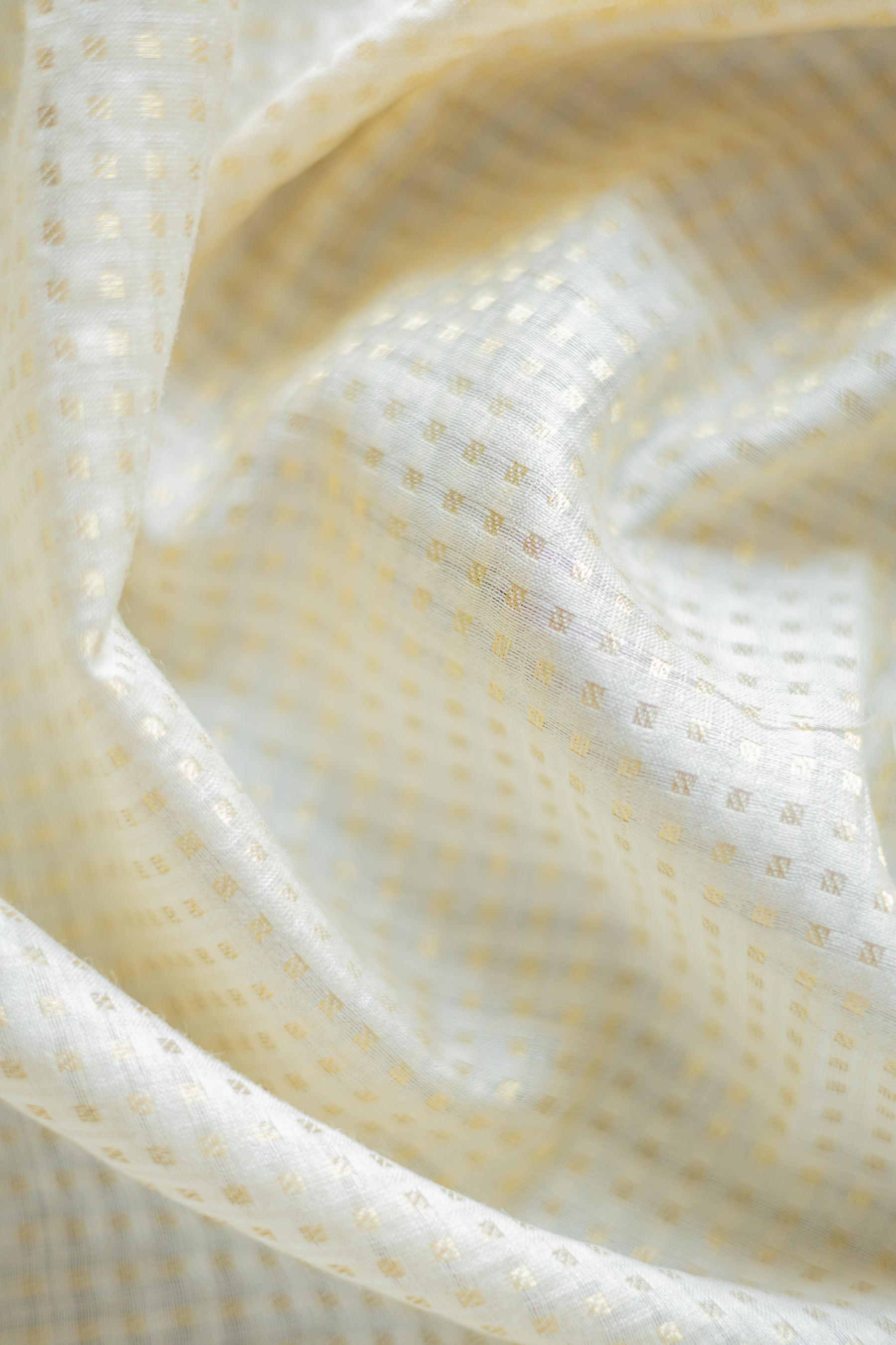 Off White Silk Cotton Handspun All Over Small Gold Checks Saree