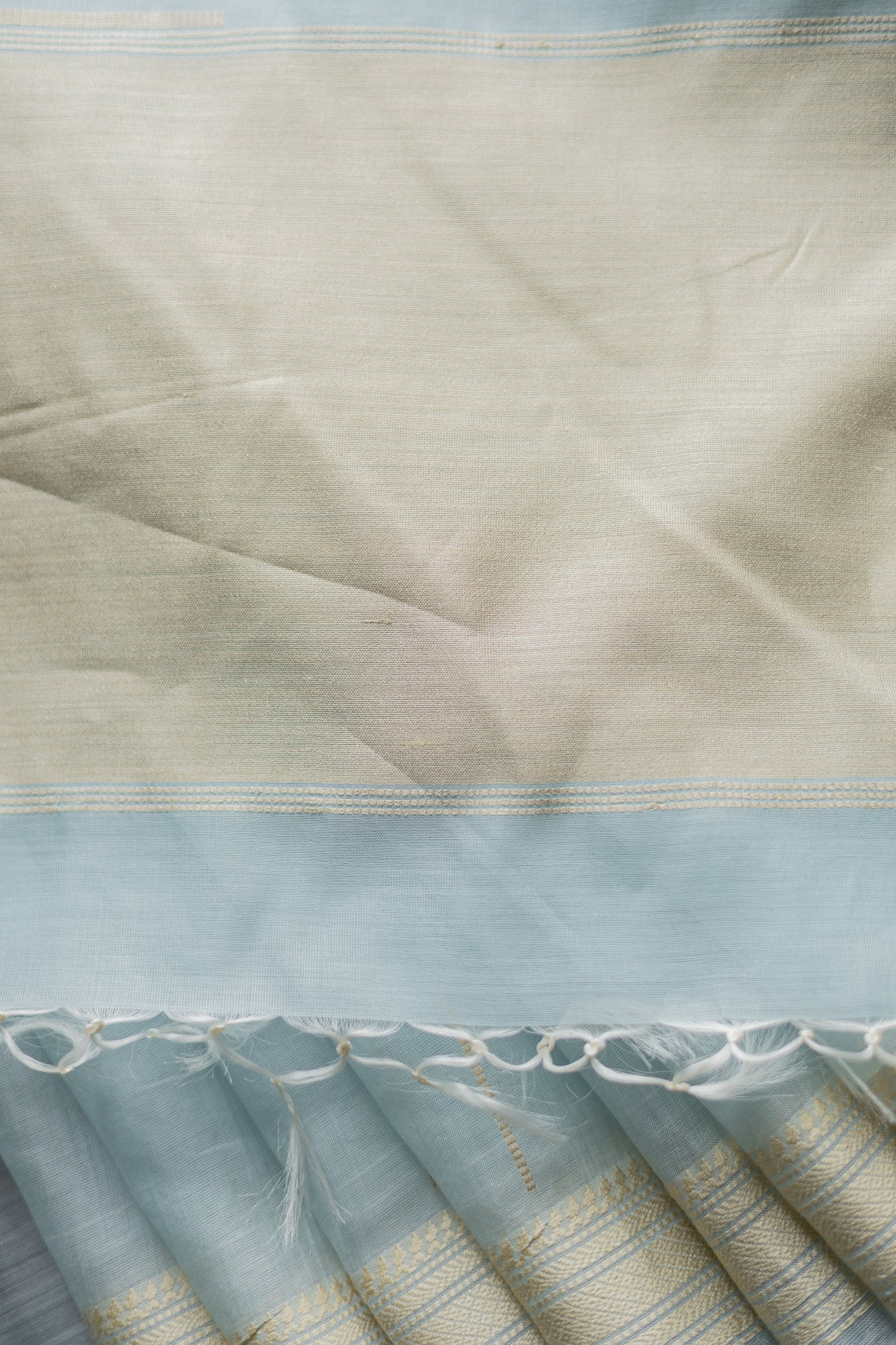 Powder Blue Silk Cotton Tissue Doby Border Khapa Line Pallu Saree