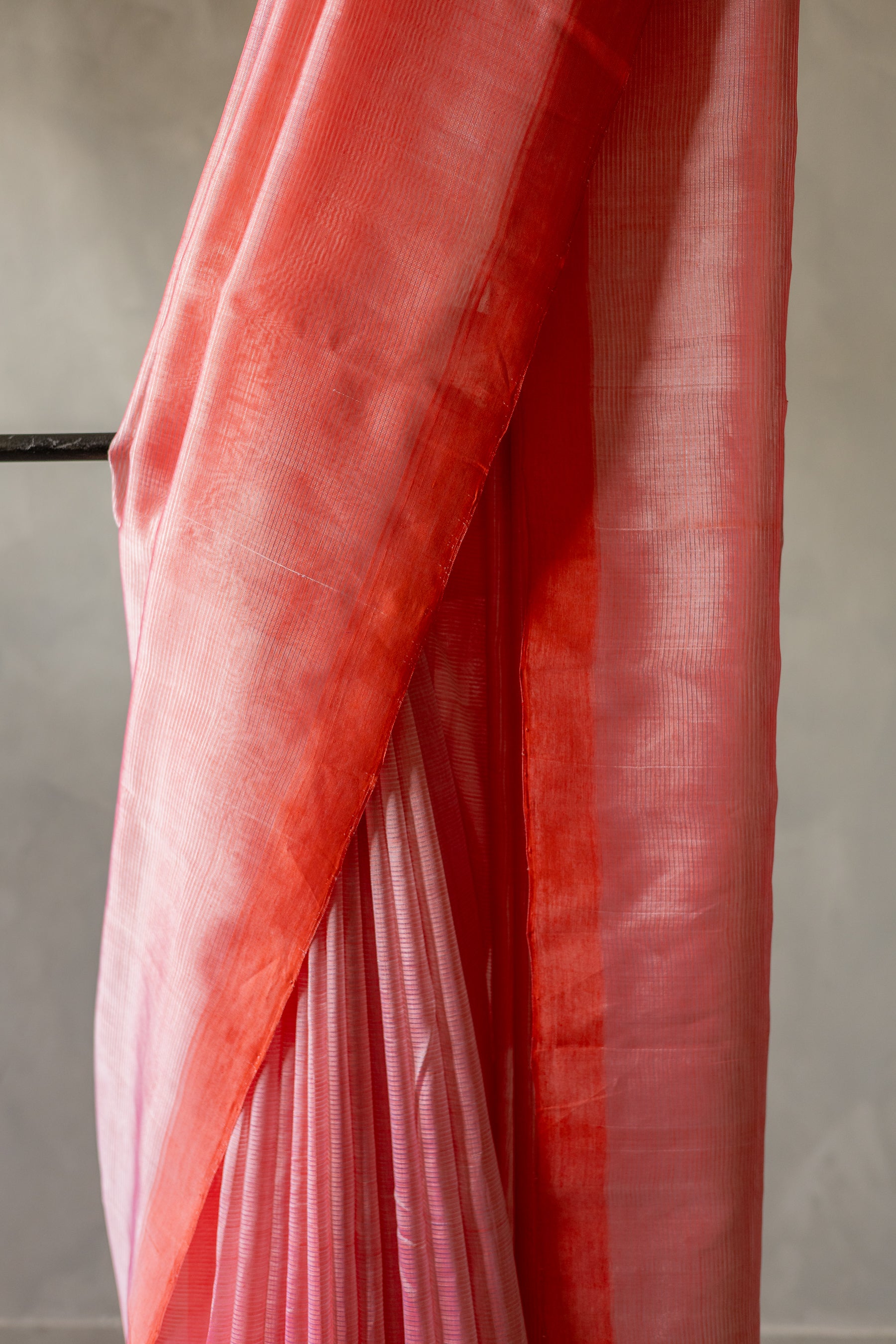 A Rose Pink Mangalagiri silk-cotton saree featuring a plain, minimalist body for a clean and elegant look. The fabric blends the softness of cotton with the subtle sheen of silk, offering a lightweight and comfortable drape. Its smooth texture and natural luster give the saree a refined, understated charm. Ideal for both casual and formal occasions, it embodies simplicity with timeless appeal.