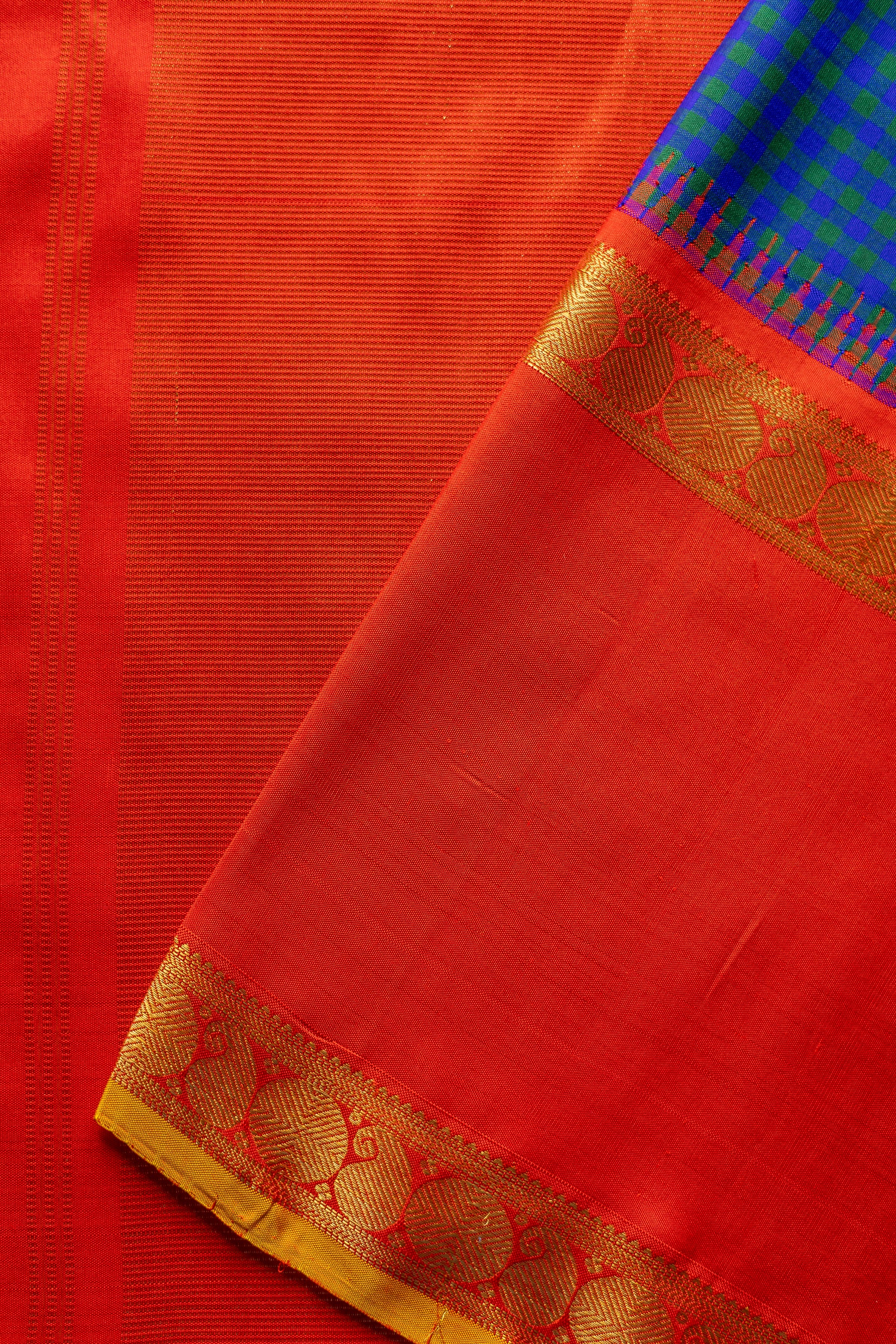 Royal Blue Kanjivaram Silk With Bright Orange Korvai Border and Pallu Saree