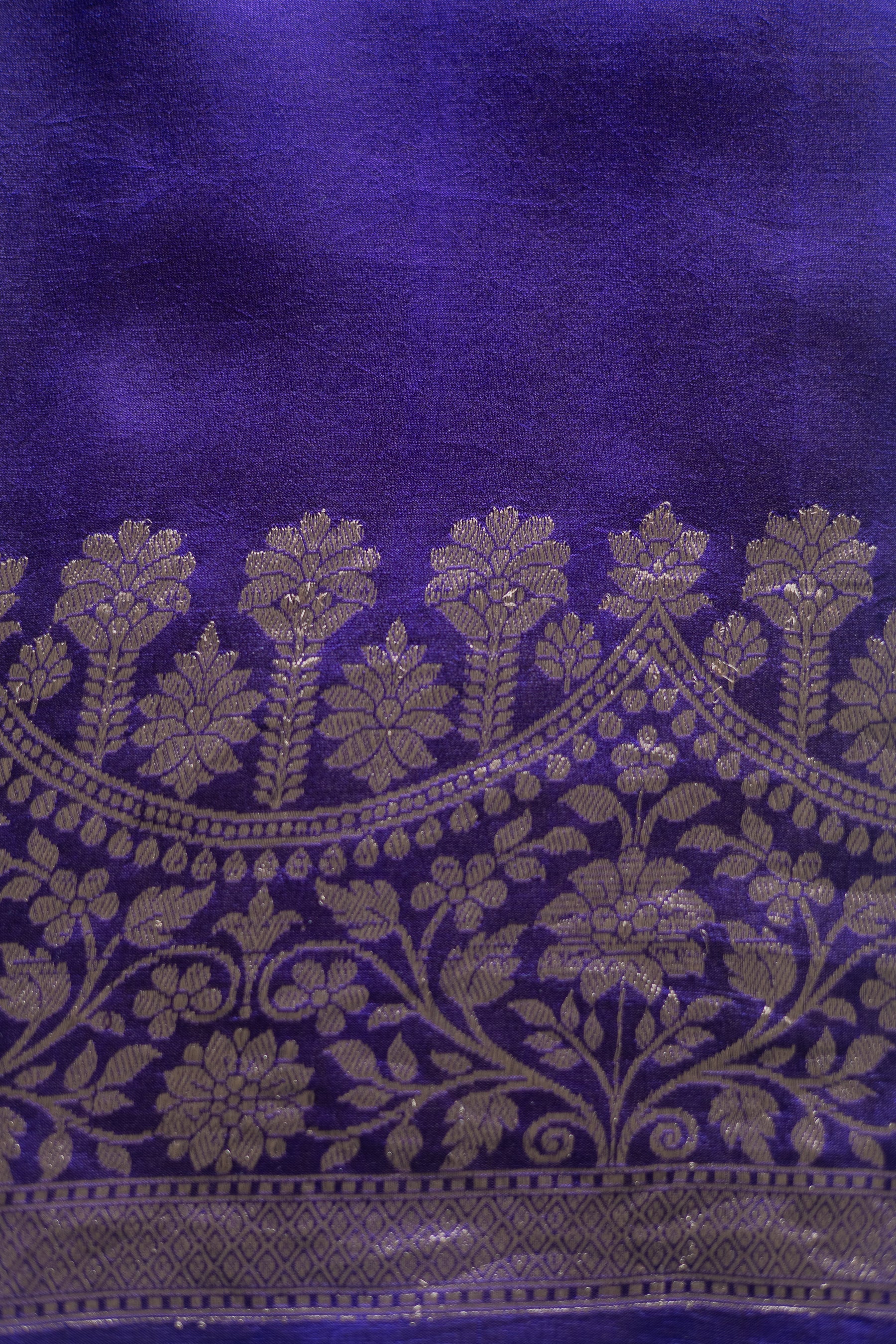 Royal blue pure Chanderi silk saree crafted from a fine silk–cotton blend known for its lightweight texture and natural sheen. The fabric features a smooth, semi-sheer body with a soft drape and breathable weave. An elaborate woven border showcases intricate traditional motifs, achieved through precision handwoven techniques.