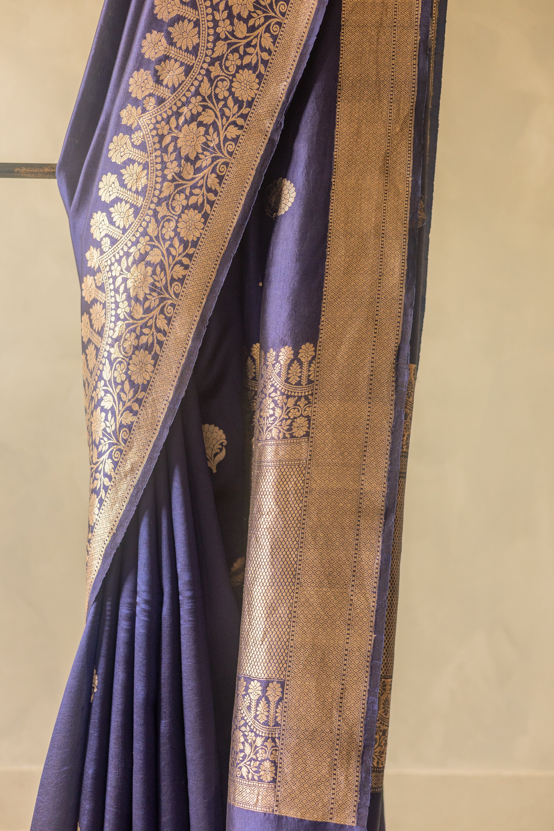 Royal Blue Pure Chanderi Silk with Elaborate Motifs Border Saree