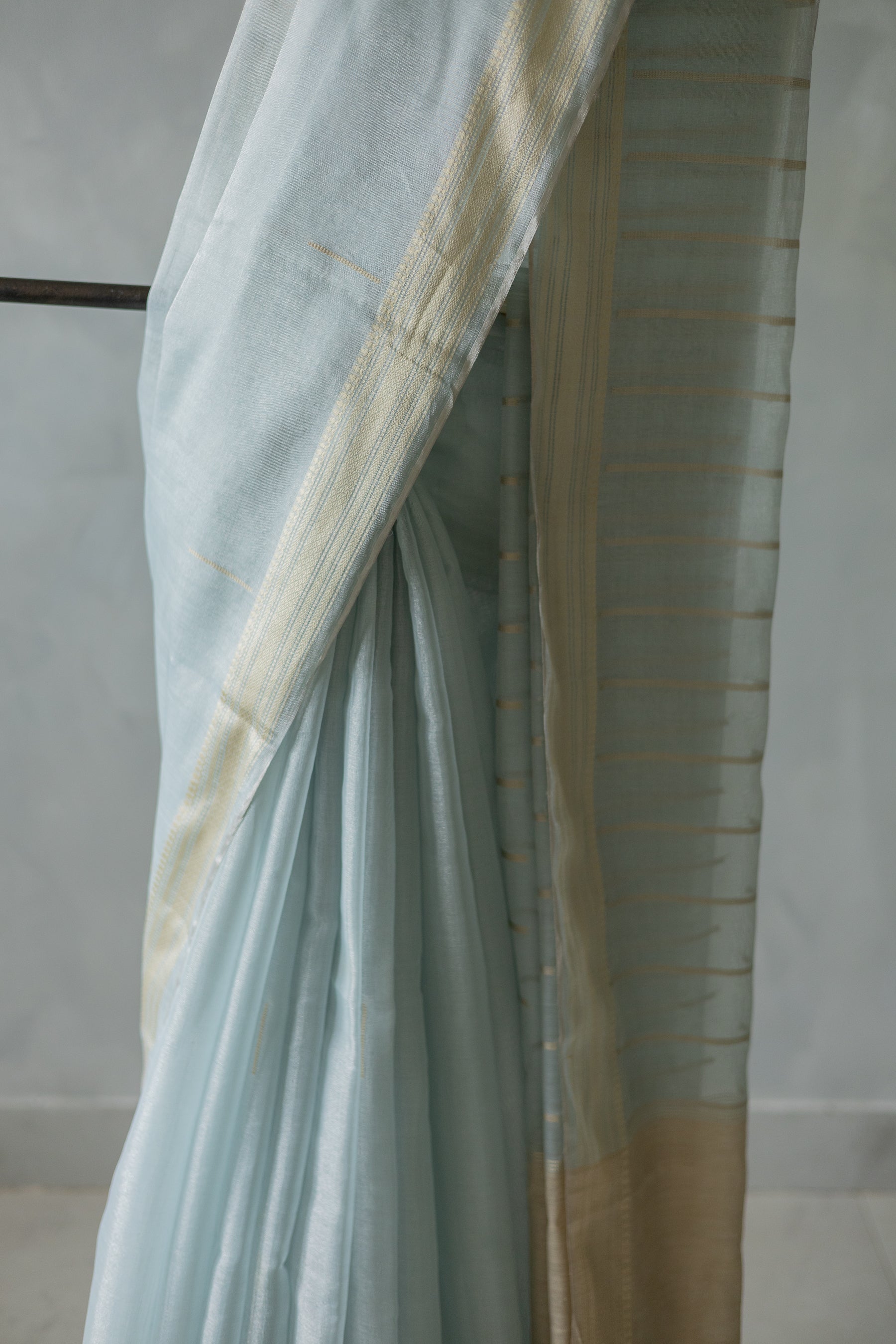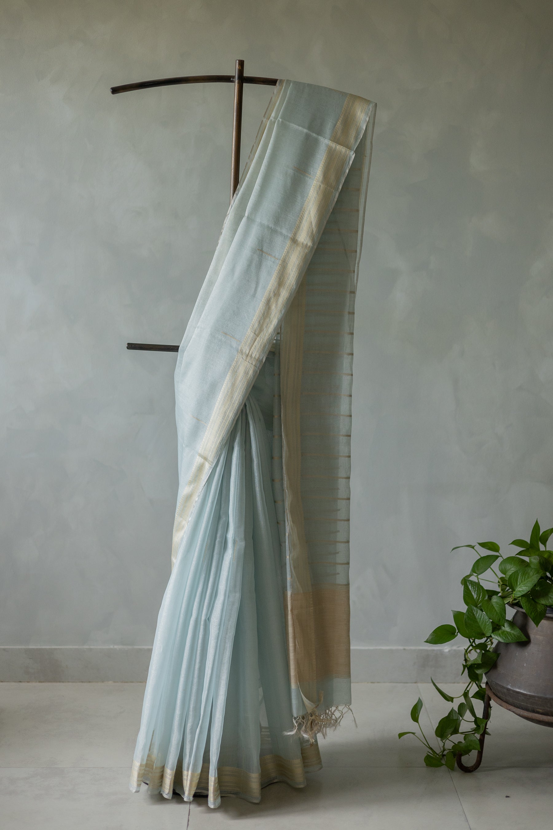 Sea Blue Silk Cotton Doby Border with Khapa Line Pallu Saree