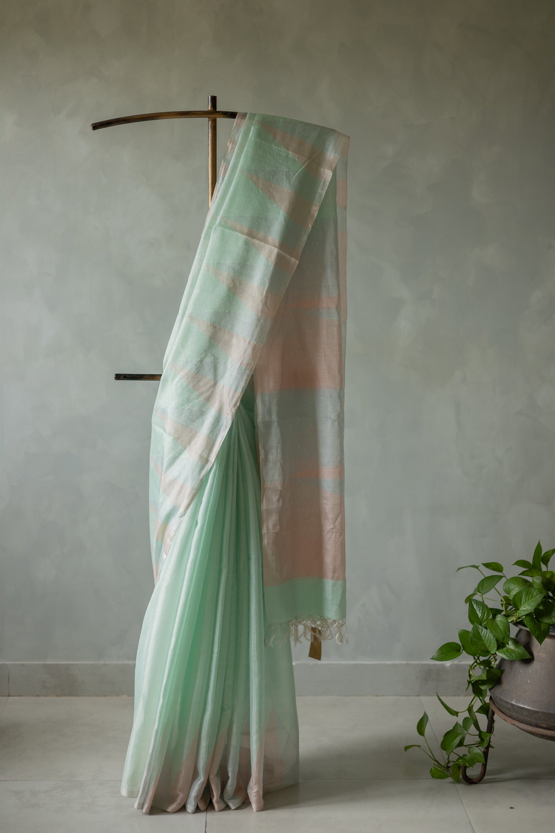 Sea Green Silk Cotton Tissue Big Temple Border Saree