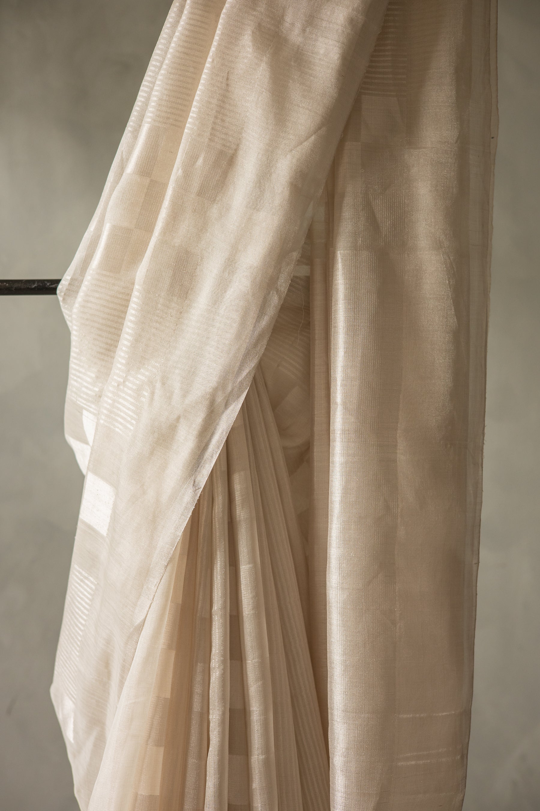 Silver Silk Cotton All Over Zari Striped and Zari Boxes Body Saree