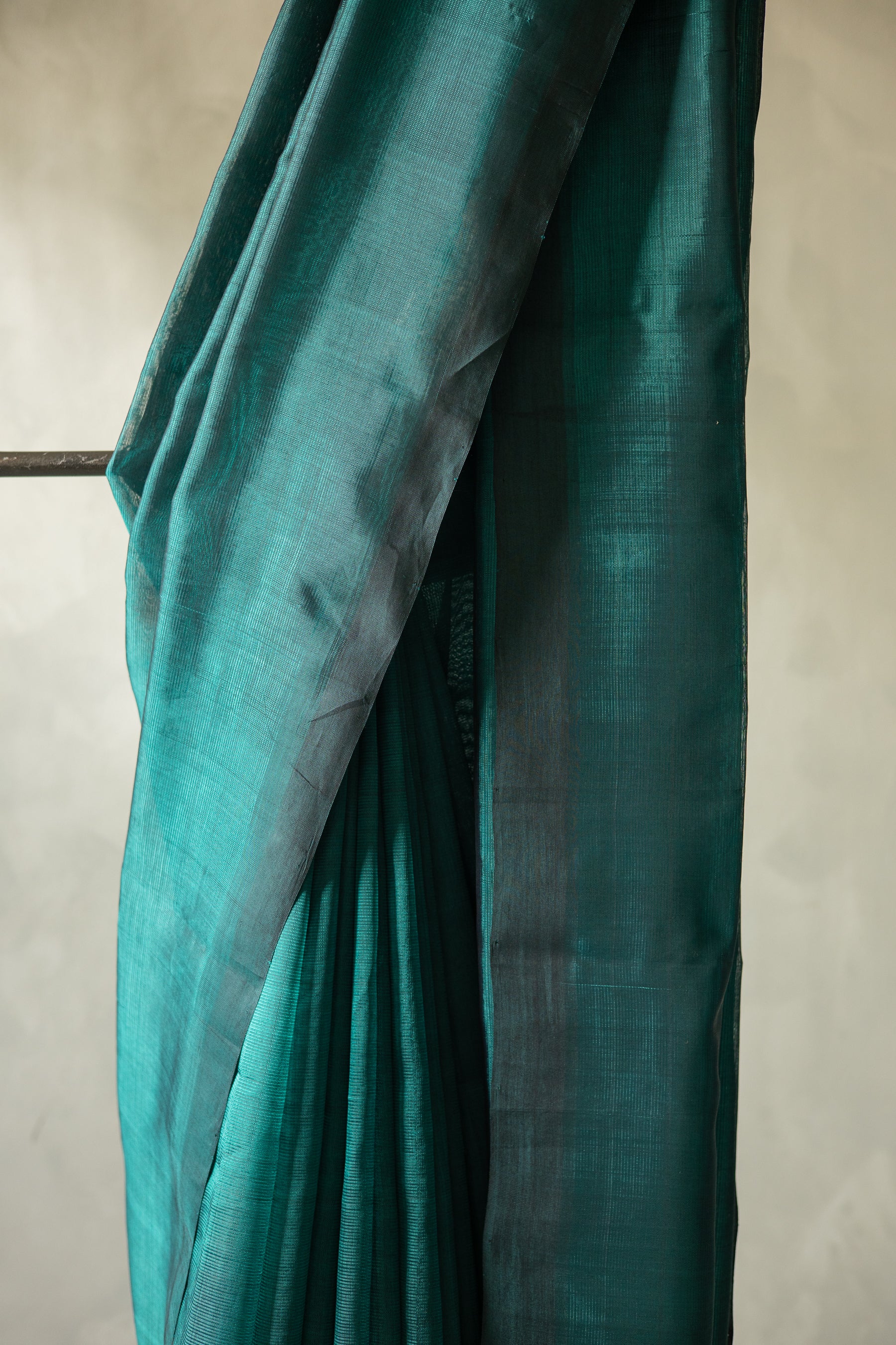 Teal Green Plain Mangalagiri Silk Cotton Saree